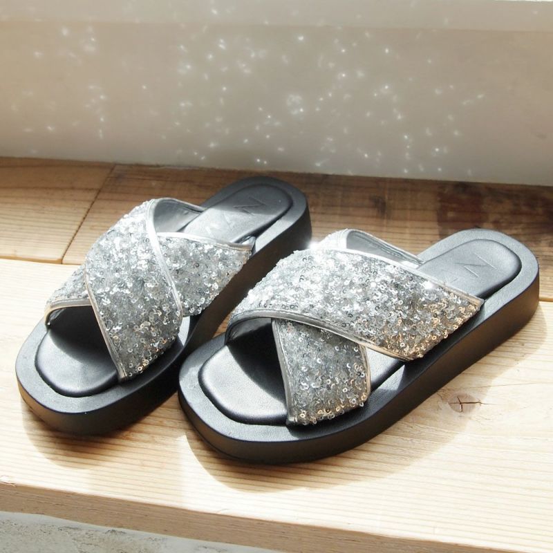 ・スパンコールの輝きをプラスした主役級キラキラクロスバンドサンダル