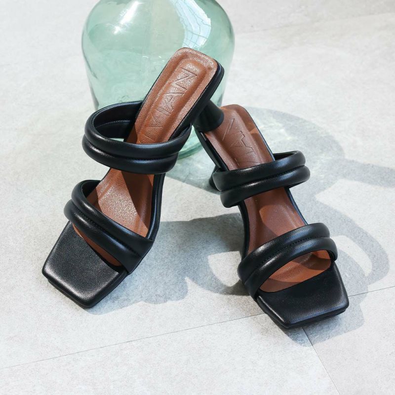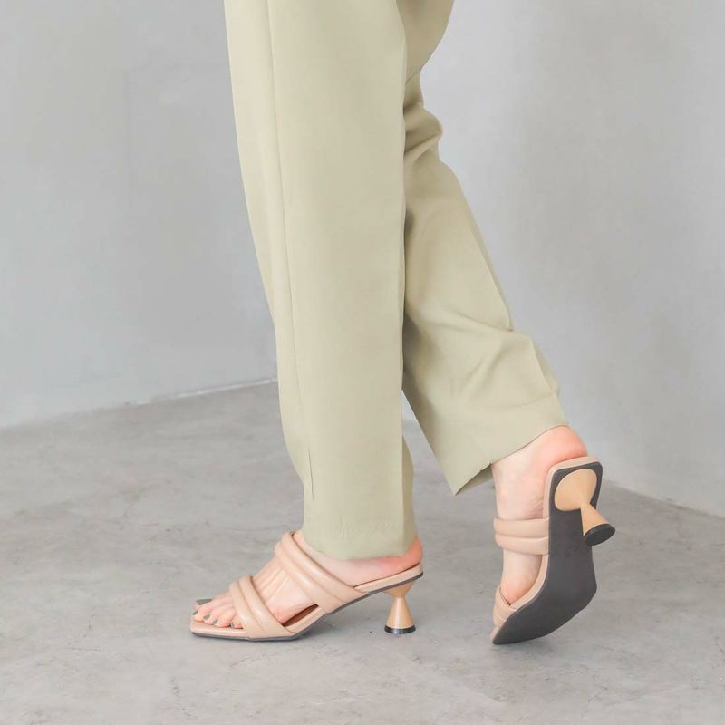 ・スクエアトゥ×変形くびれヒールでトレンドライクなシルエット!