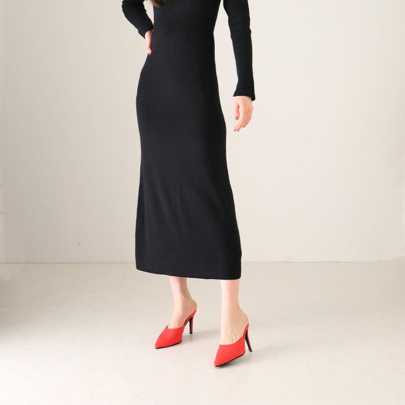 大人エッジィな美しいラインのポインテッドトゥのピンヒールミュールは、洗練されたシャープでレディな佇まいを醸す1足。