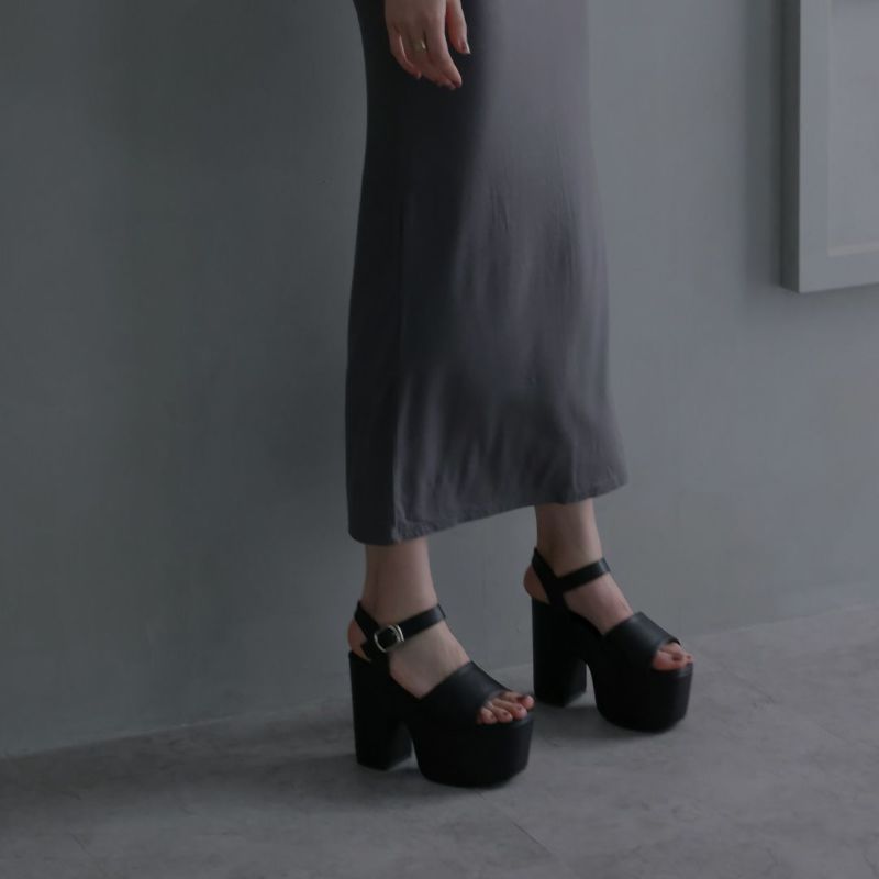旬のボリュームのある厚底でスタイルアップした大人っぽい夏に映える足元に。
