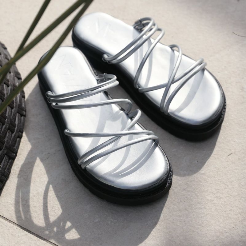 ・シアーな華奢ストラップ&トレンドフォルムで旬の足元に。