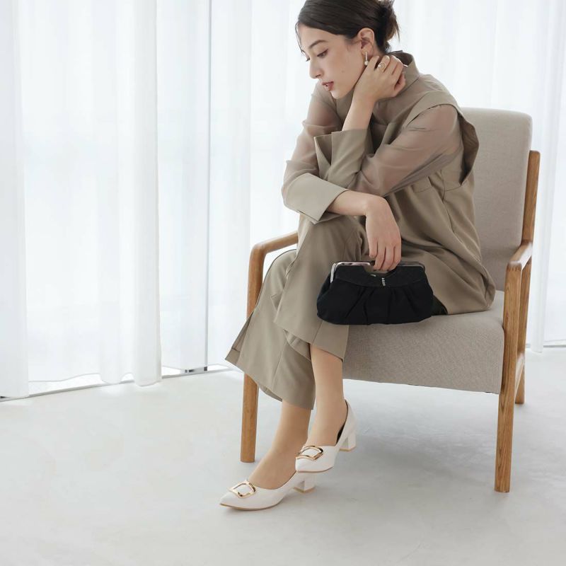 ・ポインテッドトゥ×ブロックヒールで甘くなりすぎない上品フォルム。