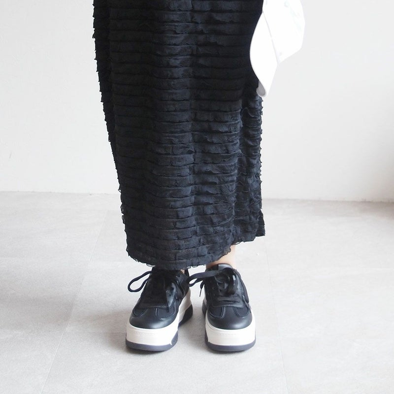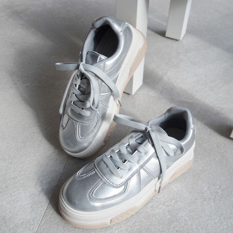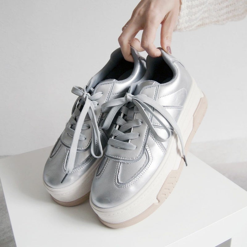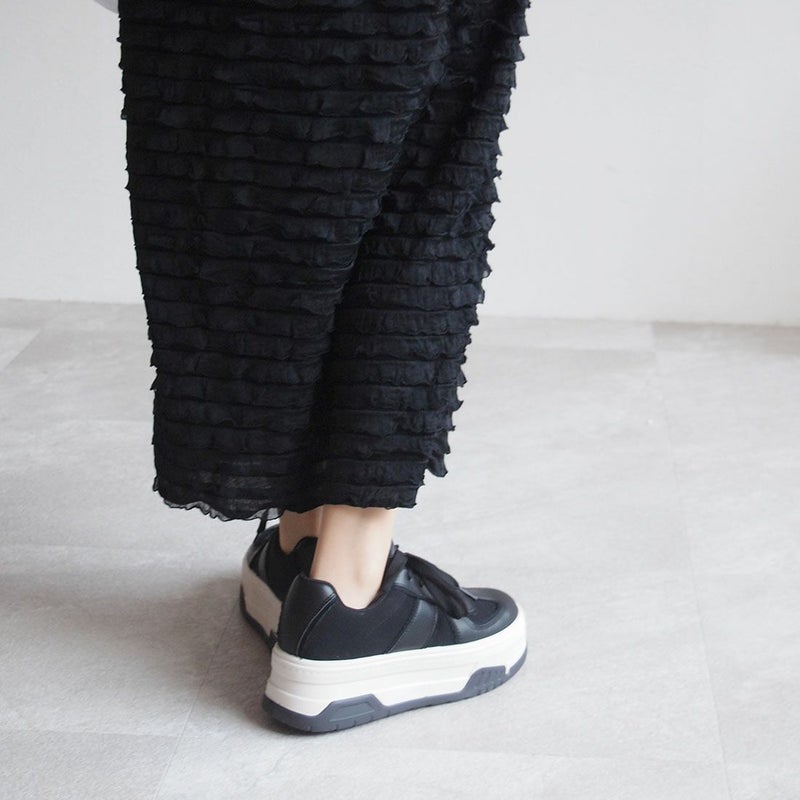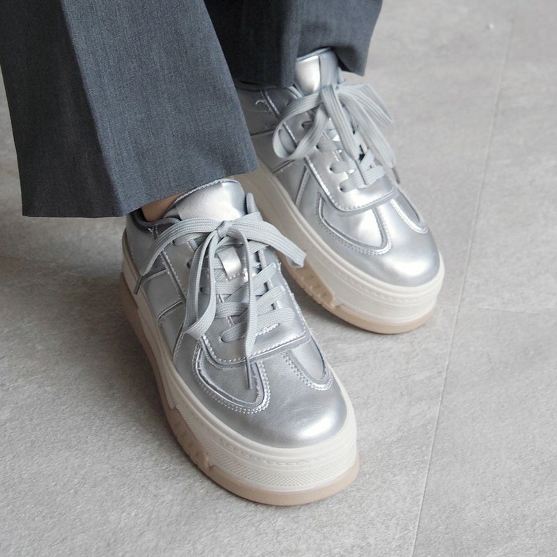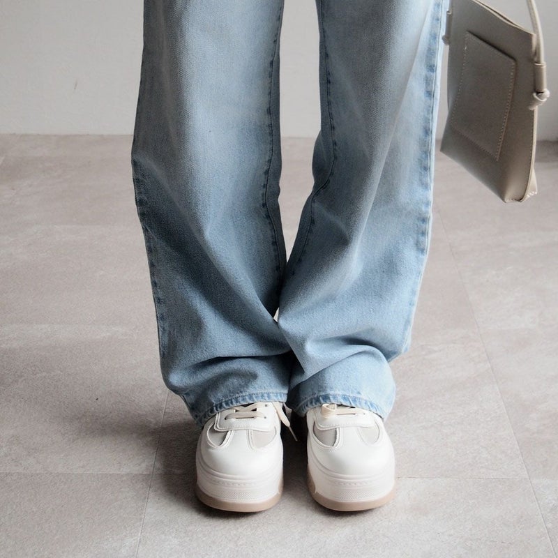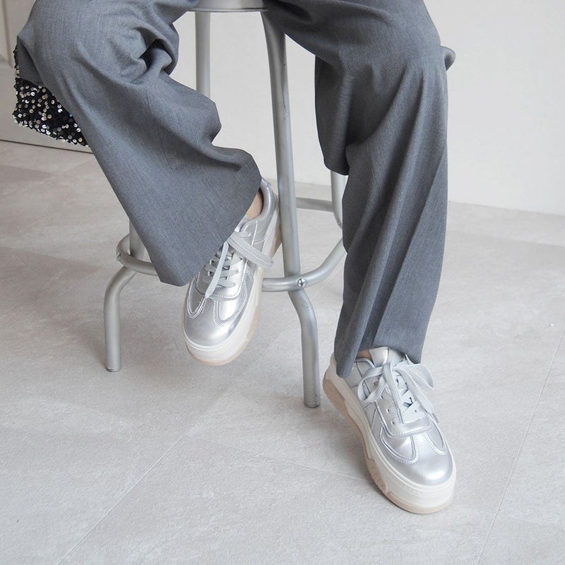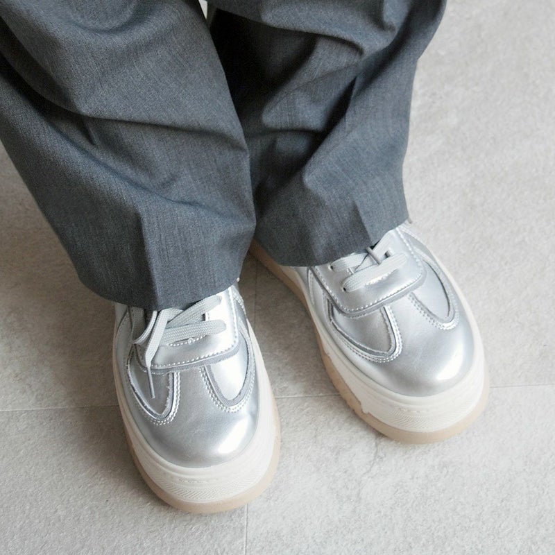 ・異素材コンビカラーの厚底Tトゥデザインレースアップスニーカー!