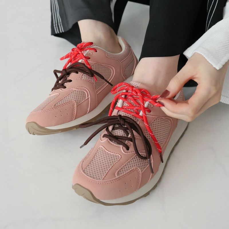 ・配色が異なる靴ひもでコーデにアクセントを加え、足元から個性を演出。