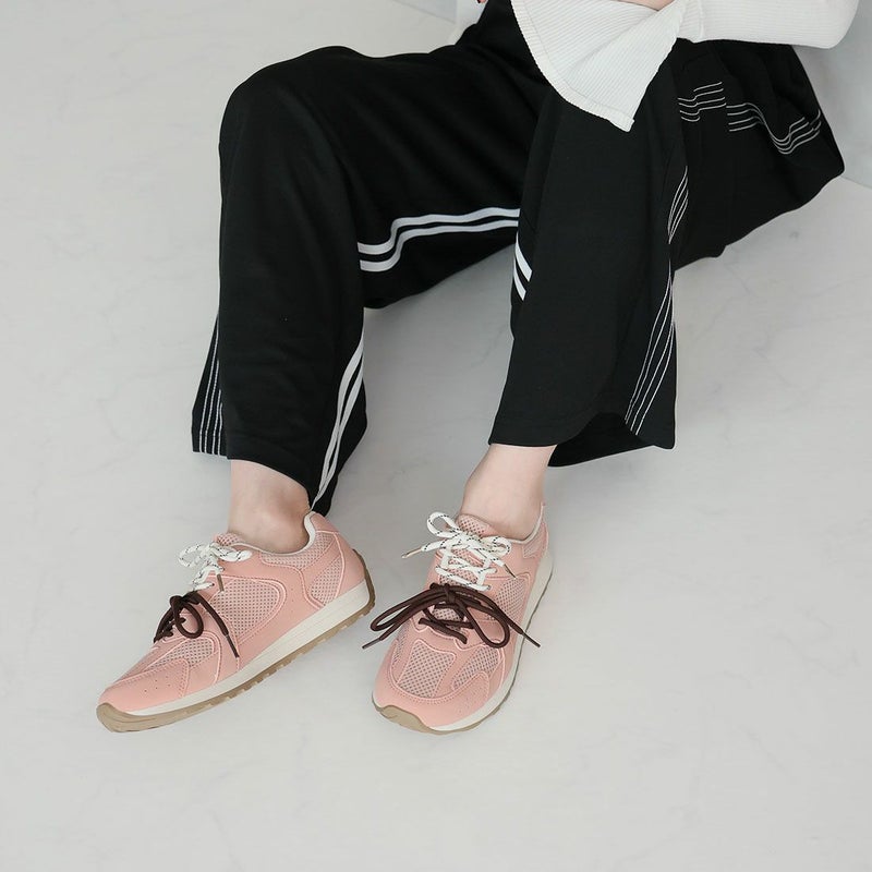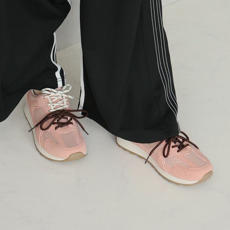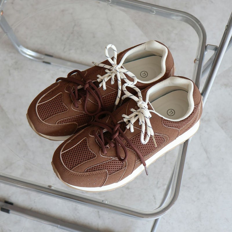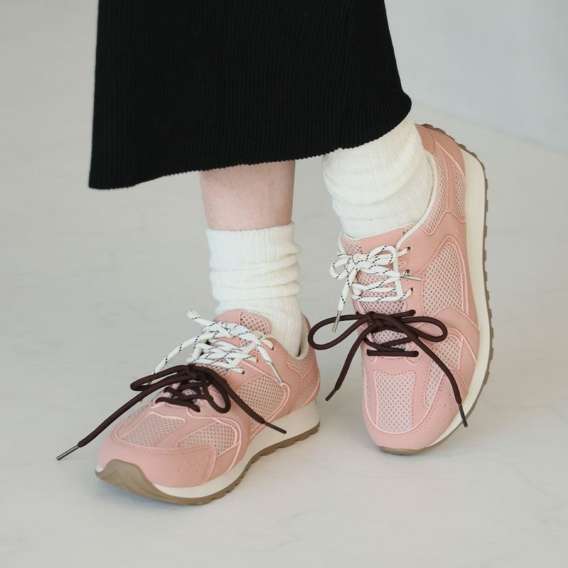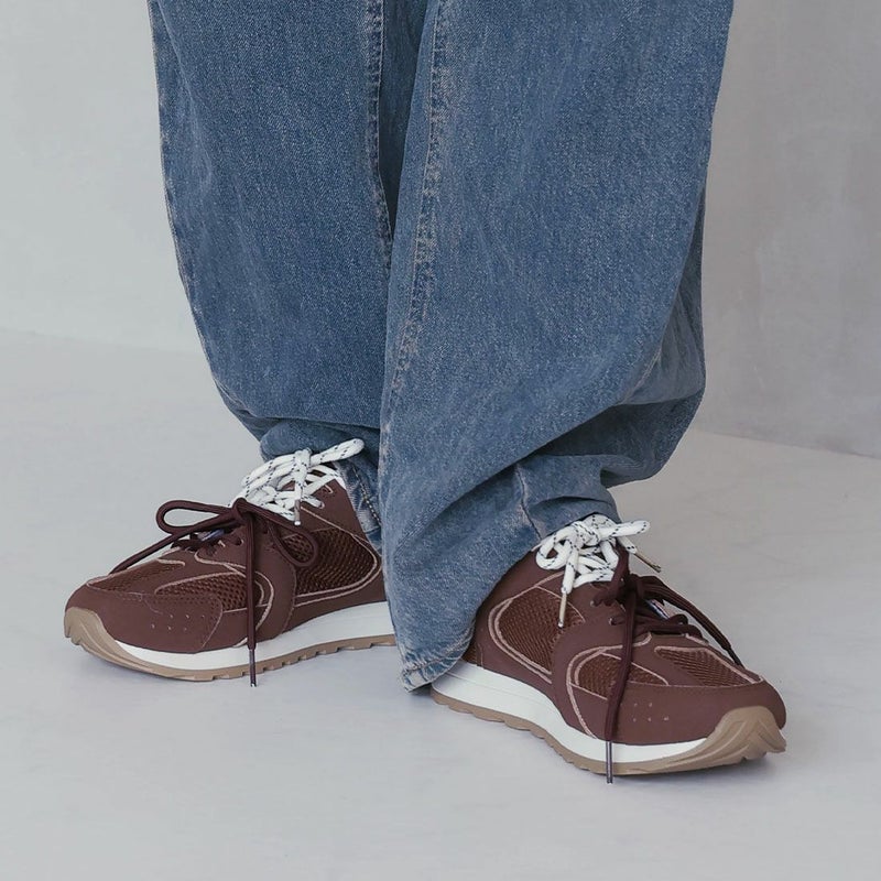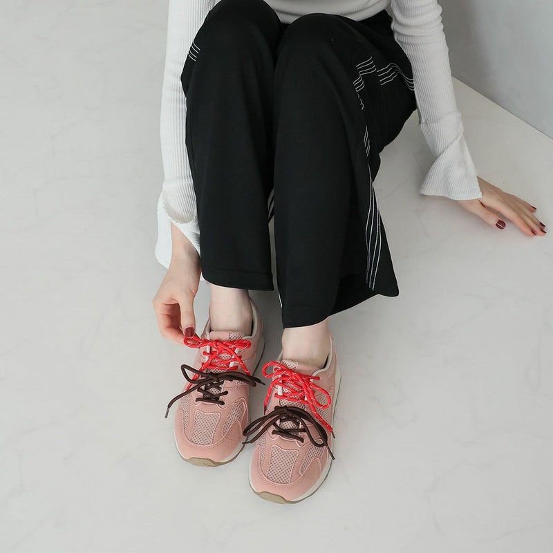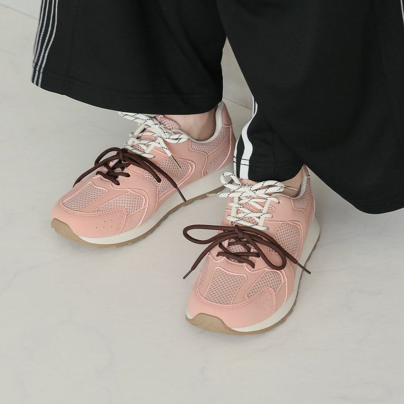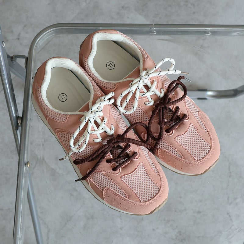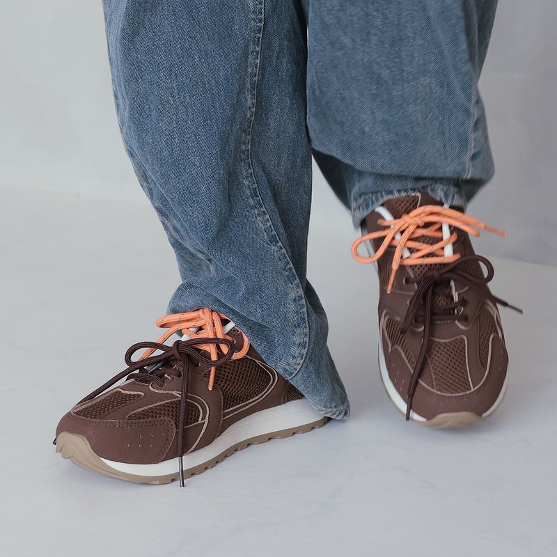・配色が異なる靴ひもでコーデにアクセントを加え、足元から個性を演出。