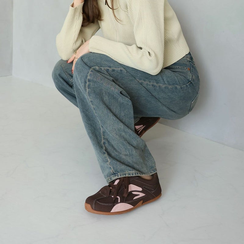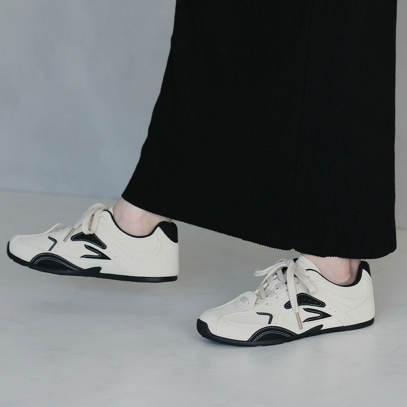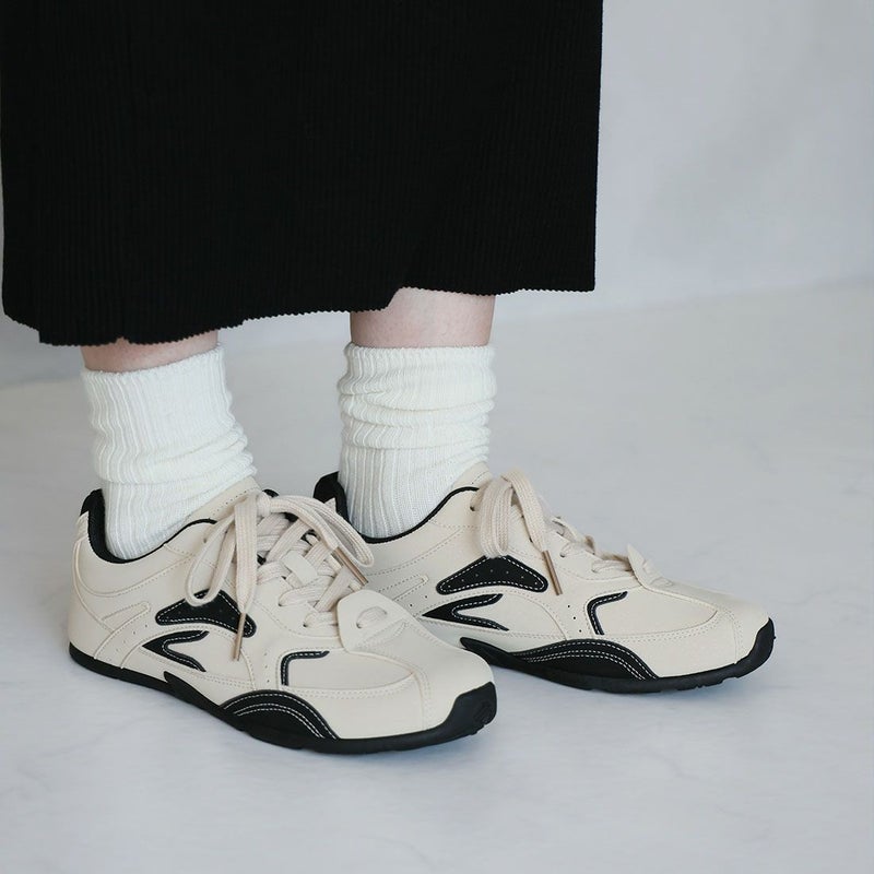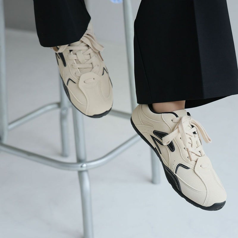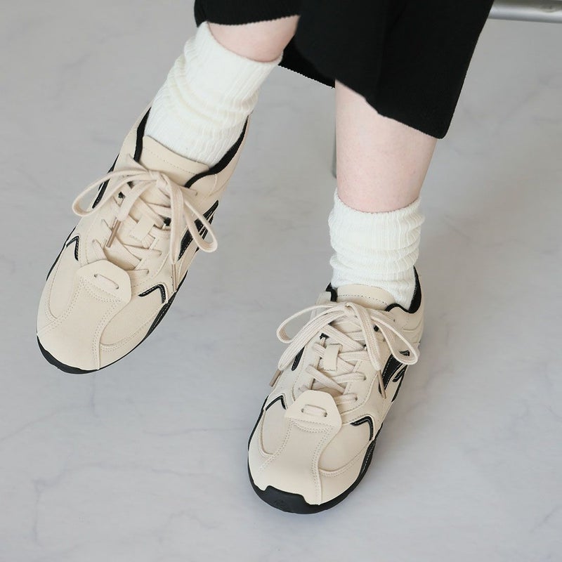 ・異素材×バイカラーデザインが、足元に“今っぽさ”をプラスしてくれるレースアップスニーカー!