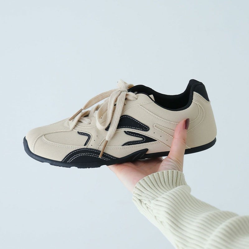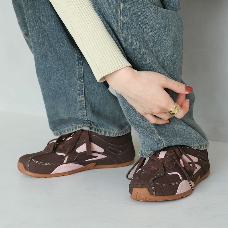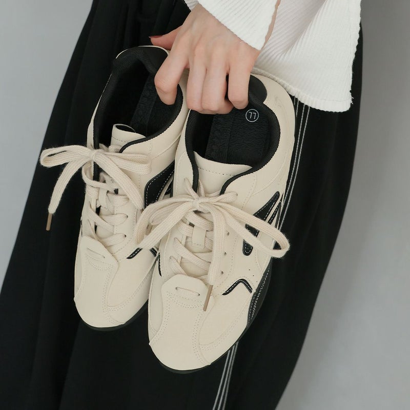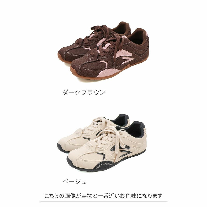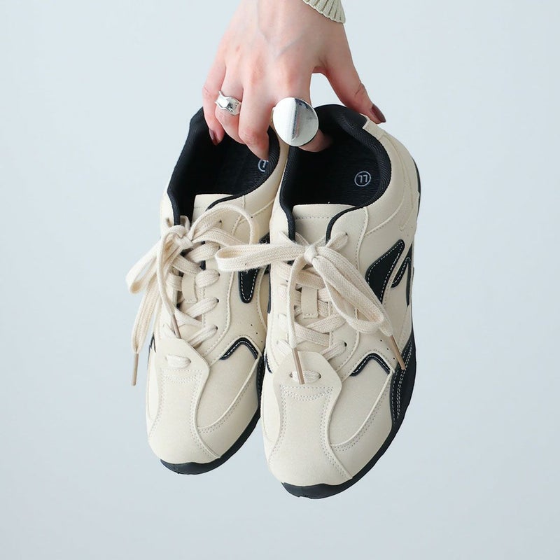 ・異素材×バイカラーデザインが、足元に“今っぽさ”をプラスしてくれるレースアップスニーカー!