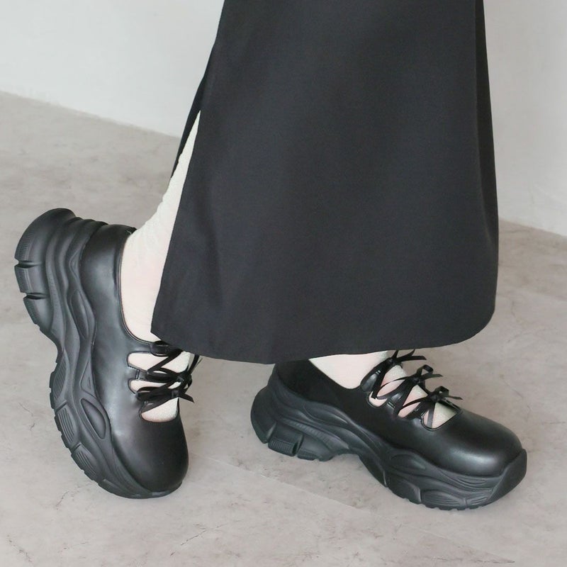 ・ぽってりとしたボリュームソールと3つのミニリボンがポイントの厚底スニーカー