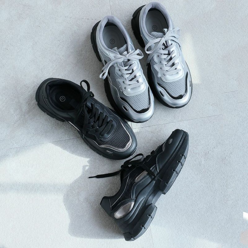 ・異素材コンビがアクセントの大人レースアップダッドスニーカー!