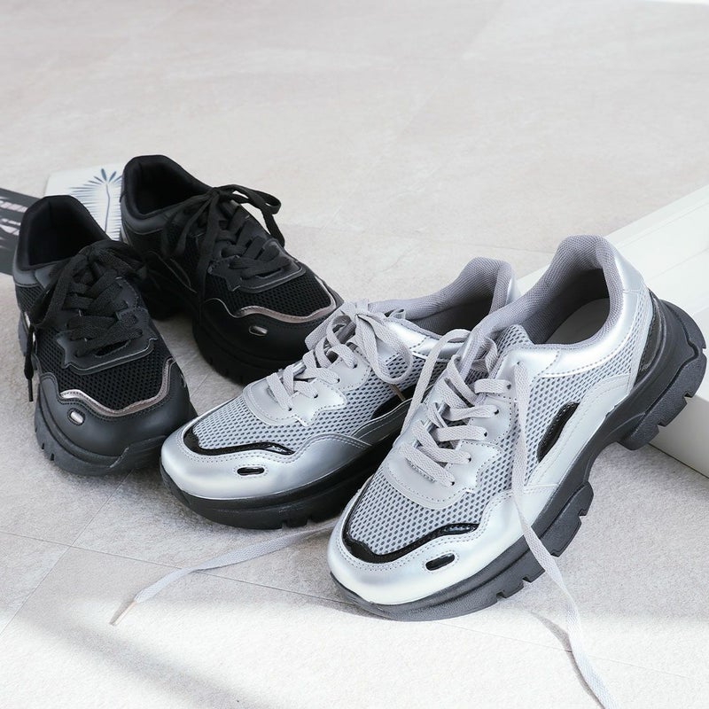・異素材コンビがアクセントの大人レースアップダッドスニーカー!