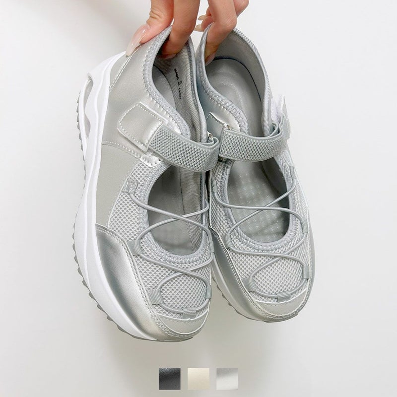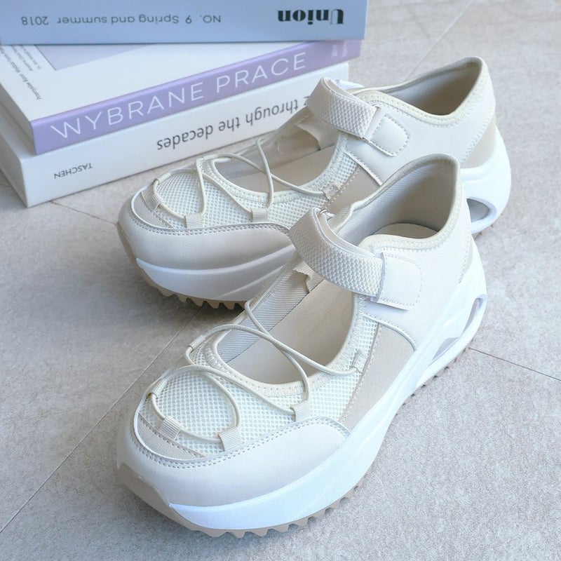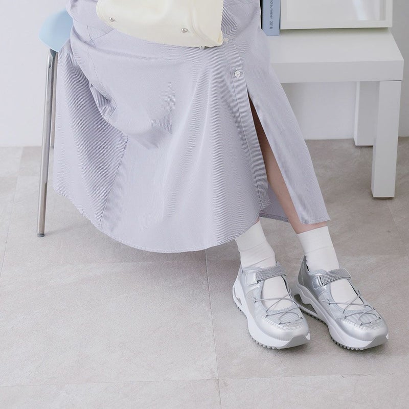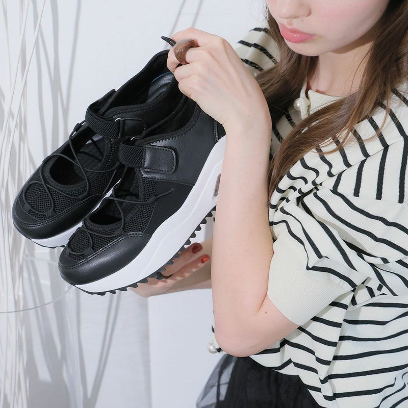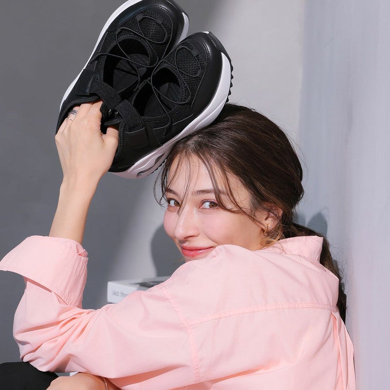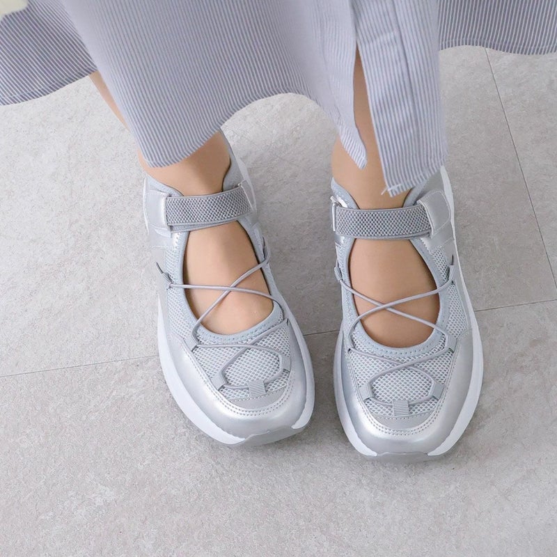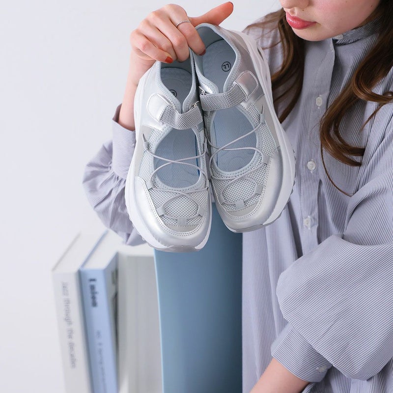 ・ゴムのマジックテープとレースアップで足に合わせて調整できて適度なホールド感