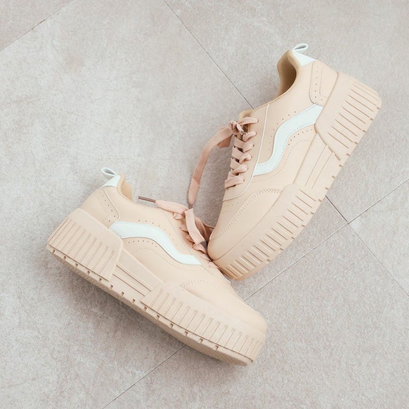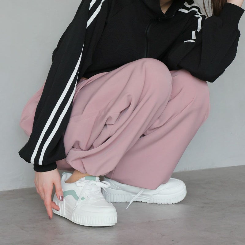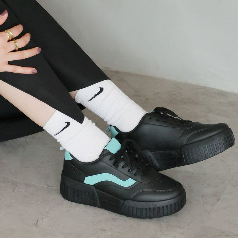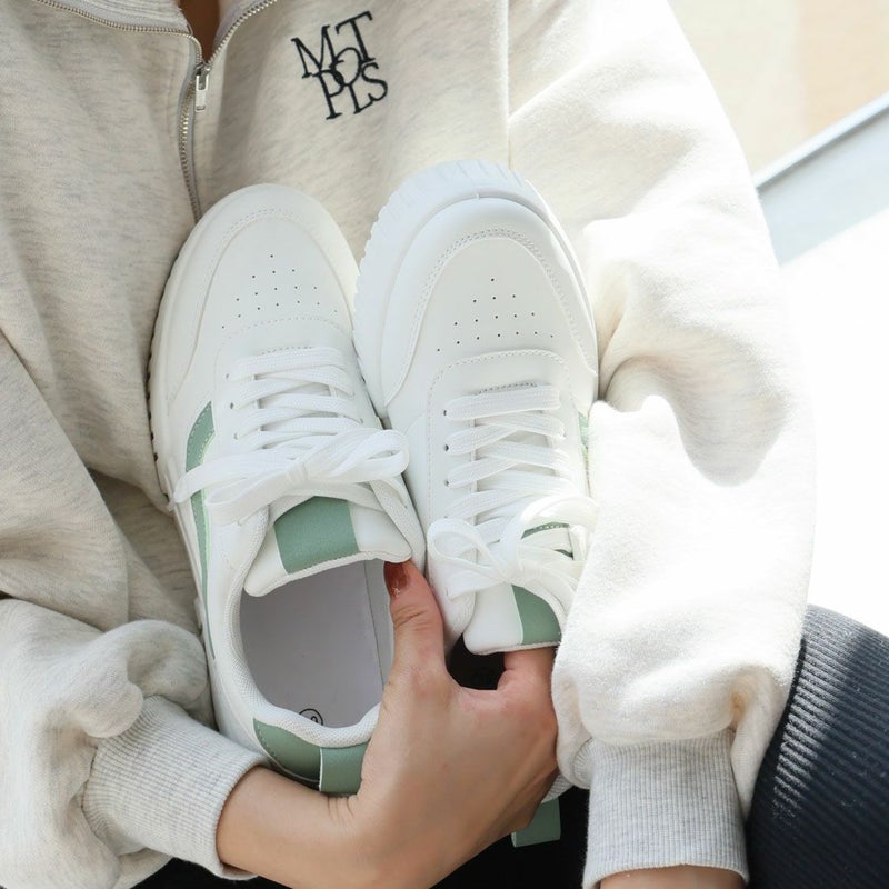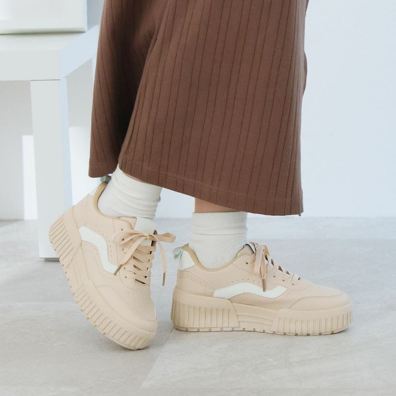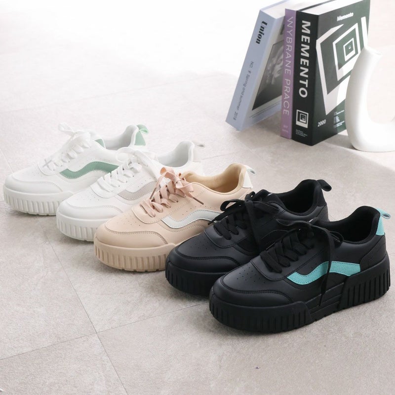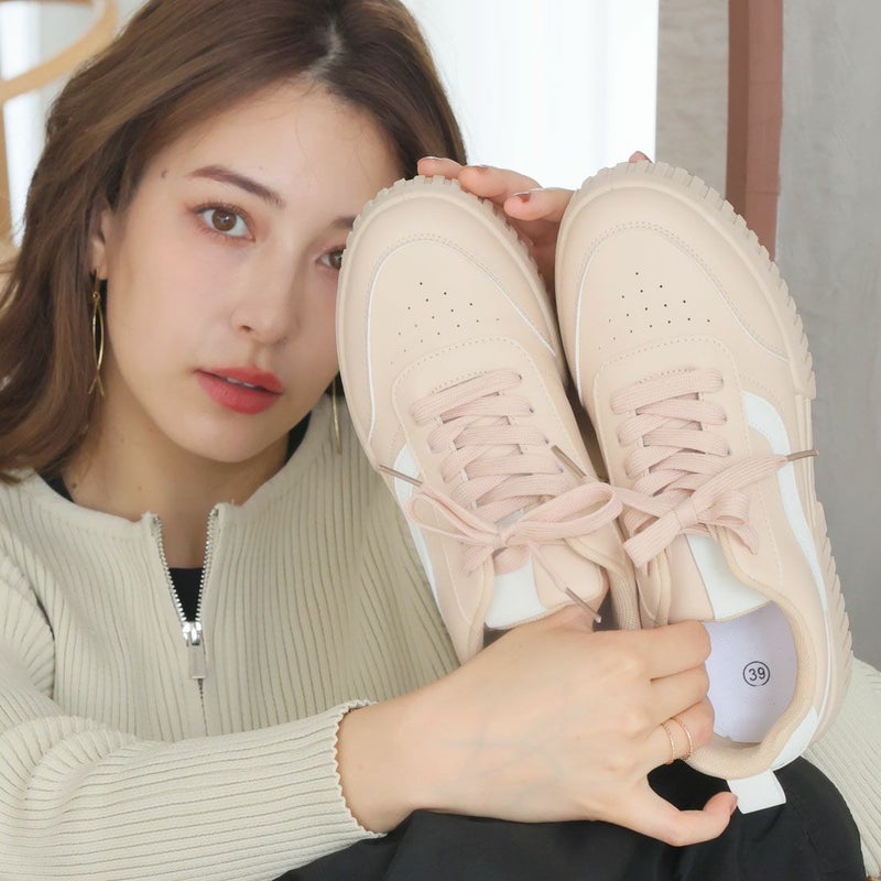 ・定番のレースアップデザインもコンビカラーで旬の足元に!