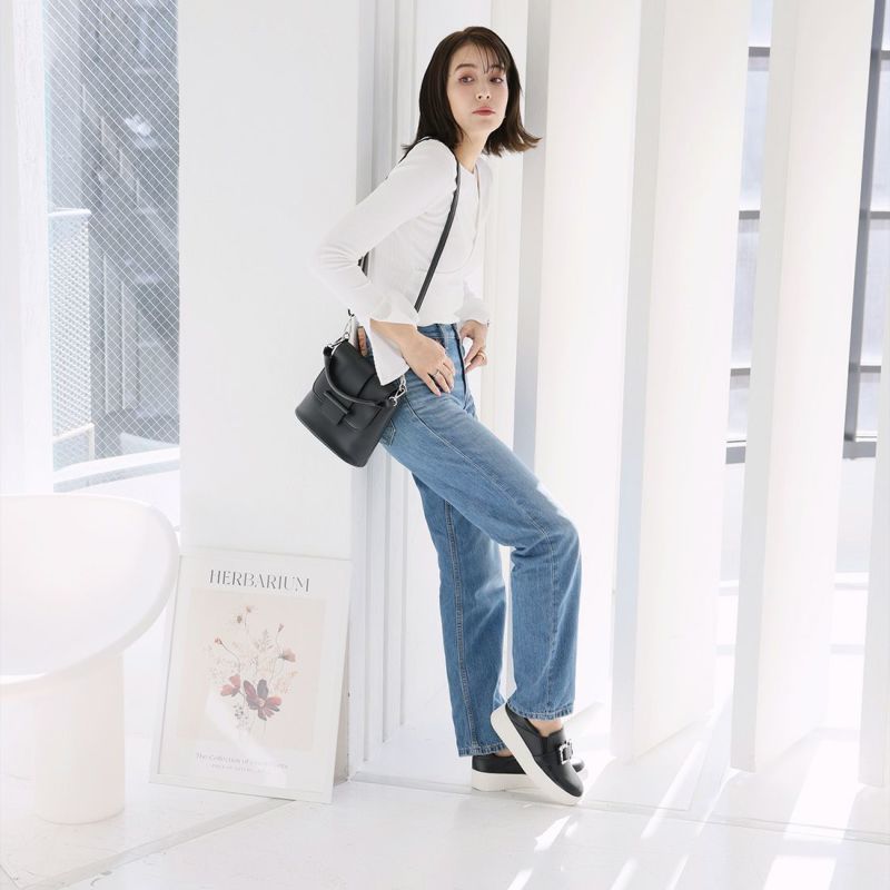 ・どんなコーデにも合わせやすいデザインはデニムはもちろん、スカートやミニ丈、韓国コーデにもマッチ!