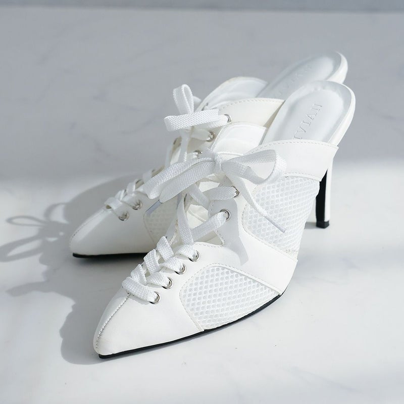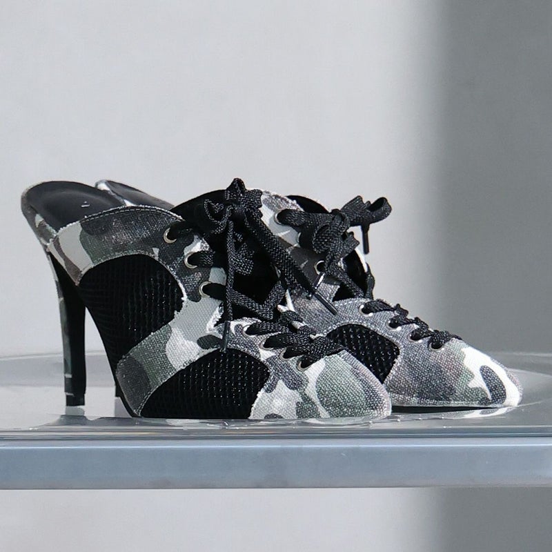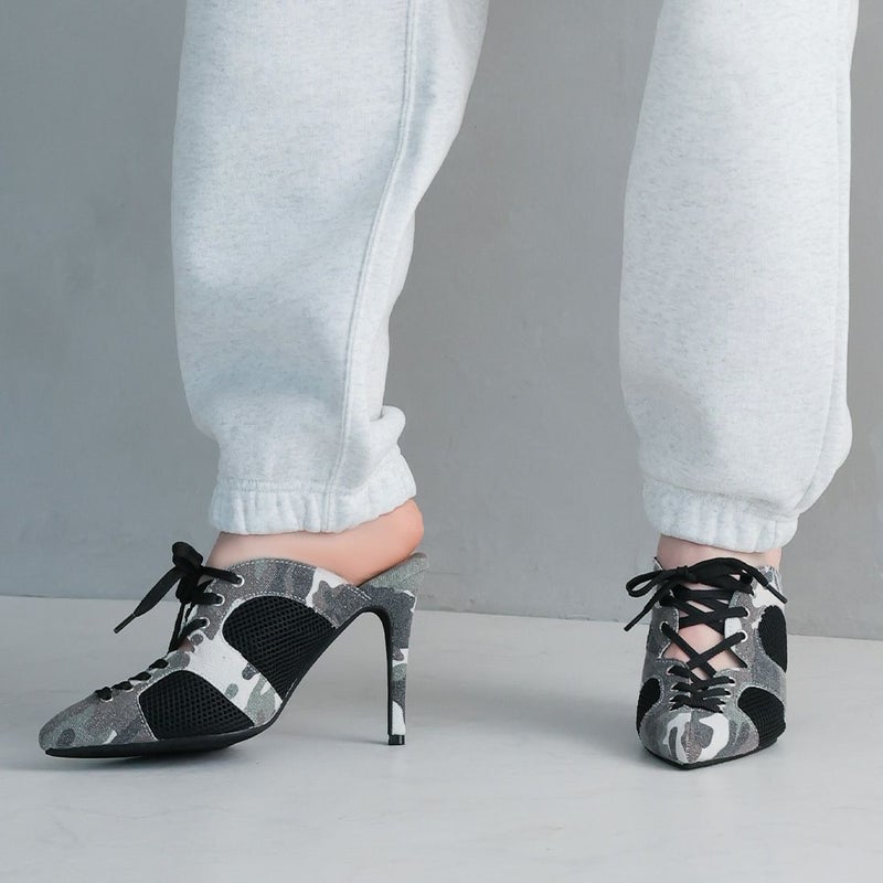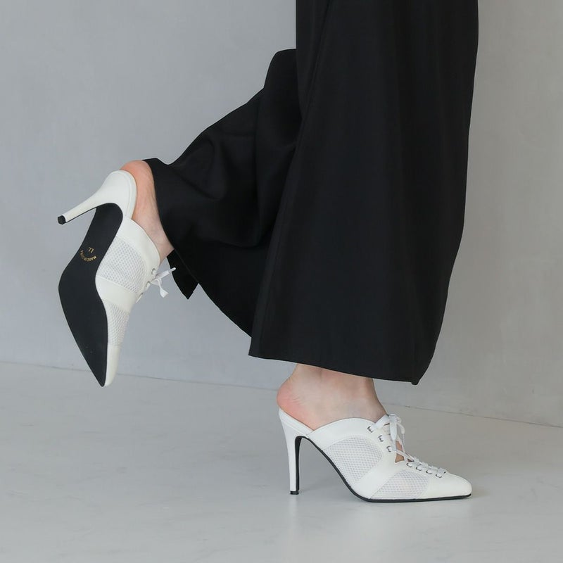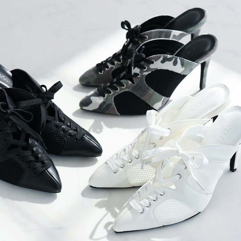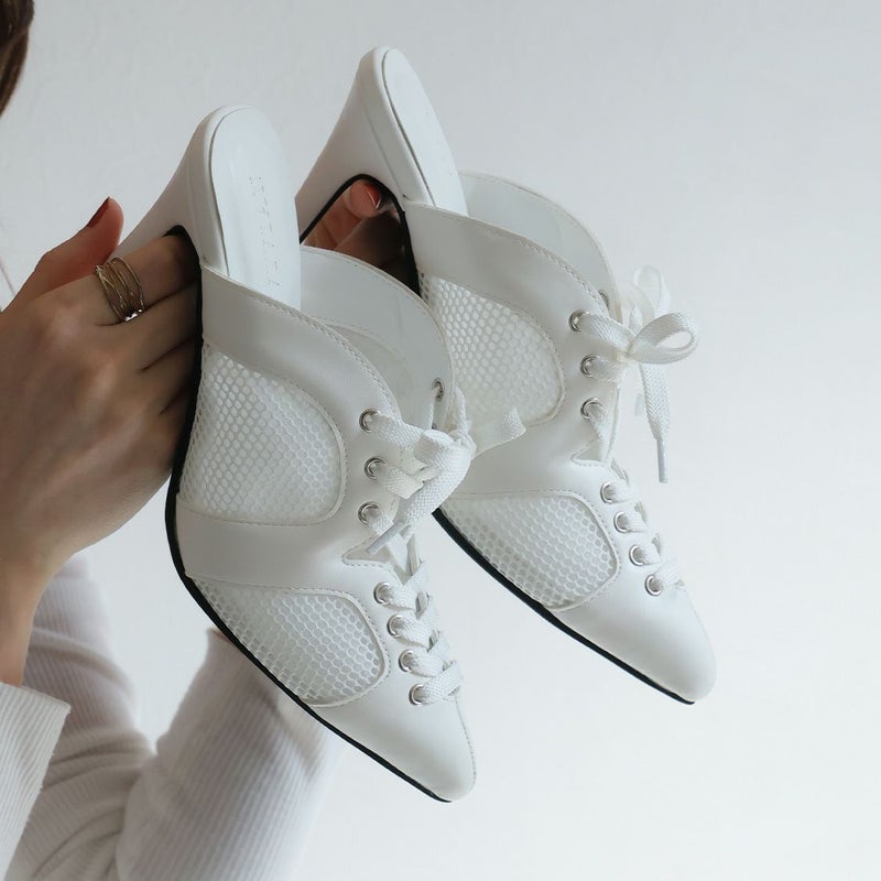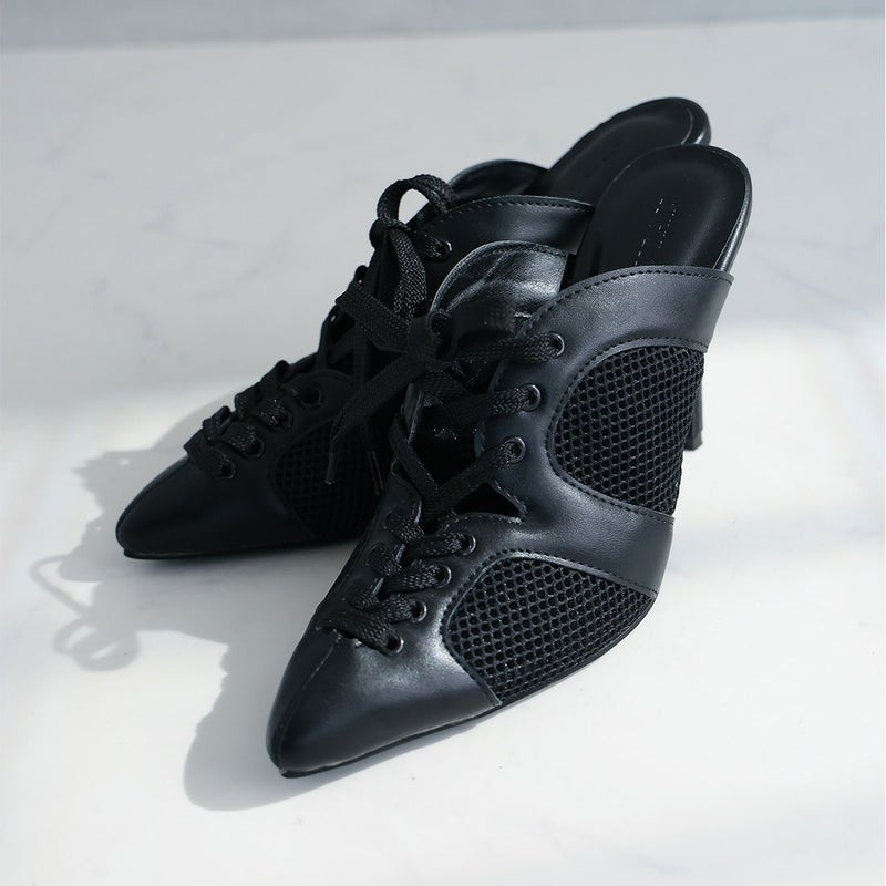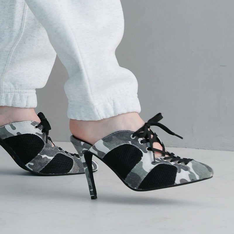 ・トレンドのスポーツ要素を取り入れたストリートモードな雰囲気の漂うスニーカーみたいなレースアップミュール!