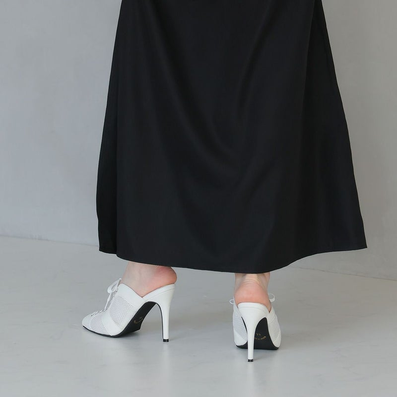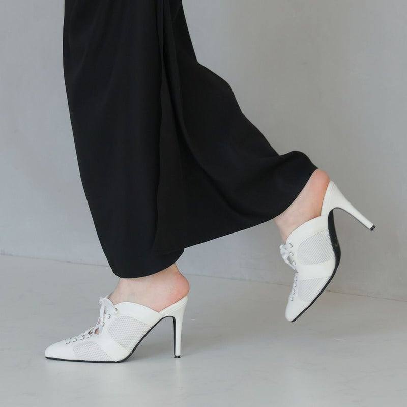 ・大人エッジィな美しいラインのポインテッドトゥのピンヒールミュールは、洗練されたシャープでレディな佇まいを醸す1足