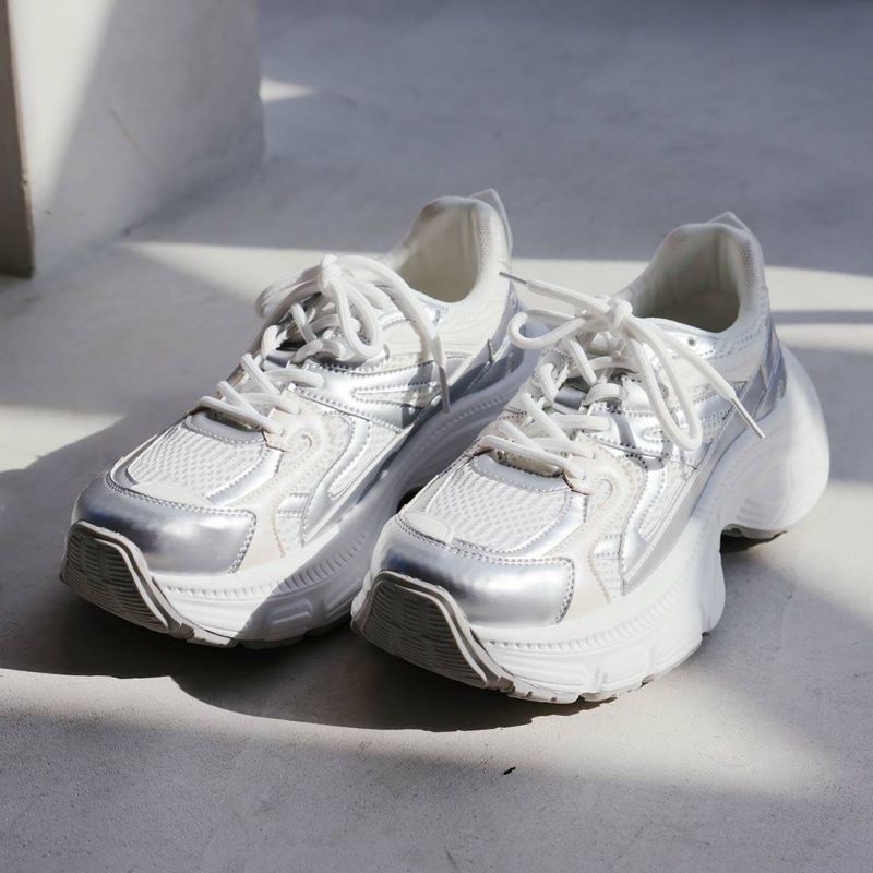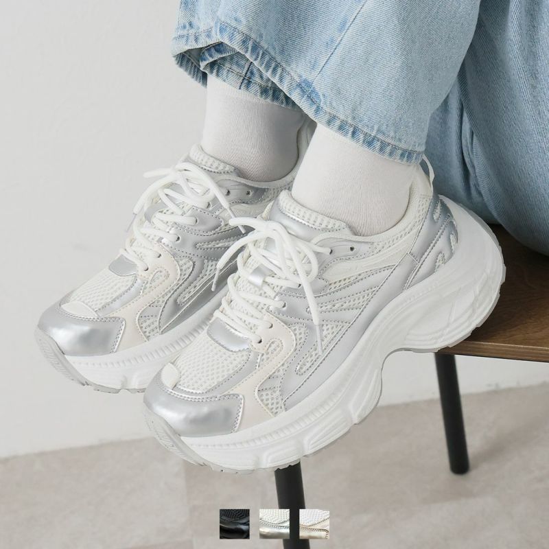 ・異素材コンビがアクセントのレースアップダッドスニーカー!