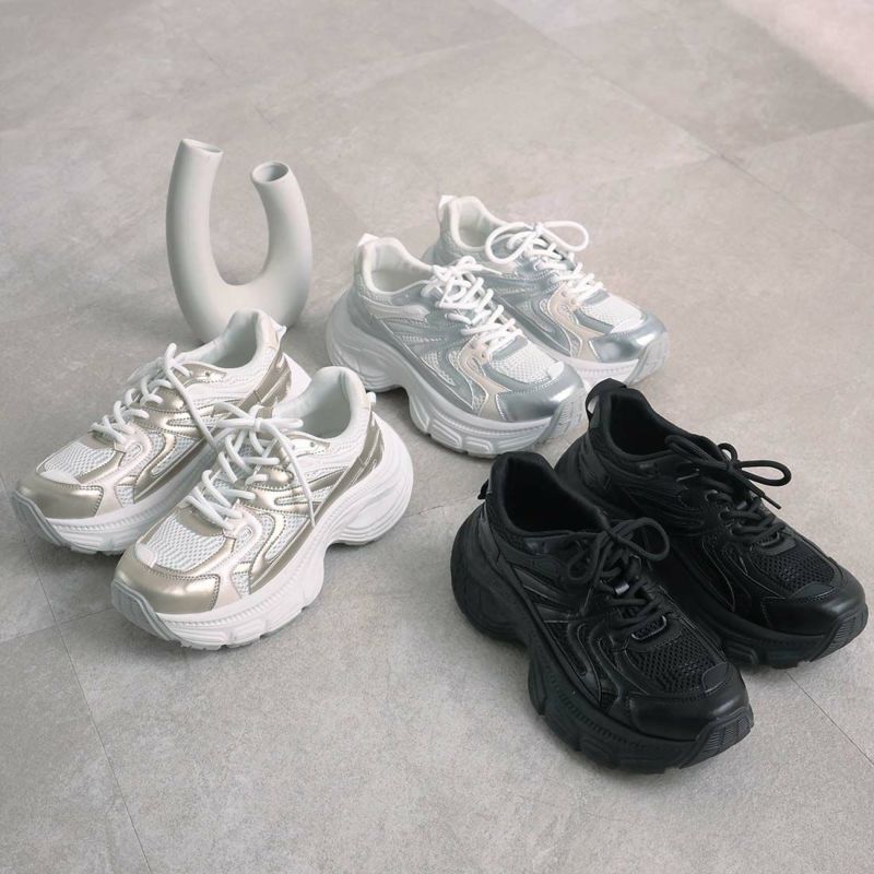 ・異素材コンビがアクセントのレースアップダッドスニーカー!