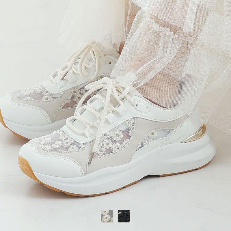 ・乙女心くすぐるフラワーレースが目を引く主役級シアースニーカー!