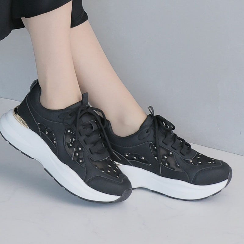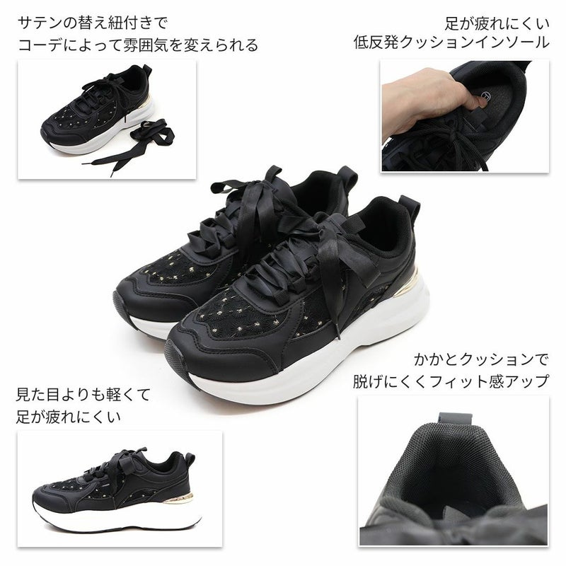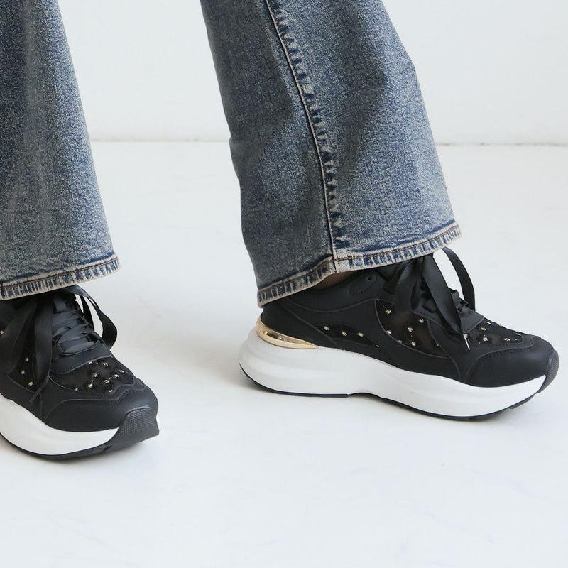 ・ボリュームのあるスニーカーソールに、女性らしいレースアッパーを使用したスニーカー