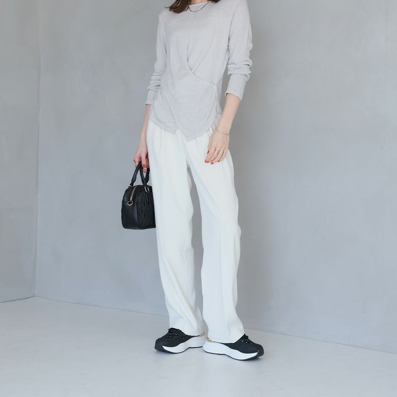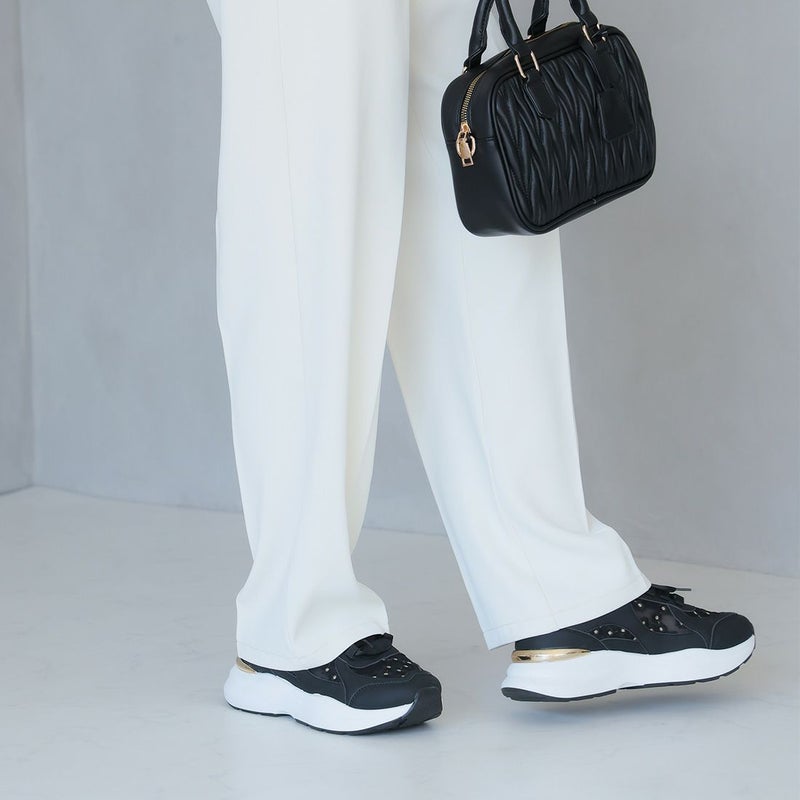 ・スニーカーなのに高級感があってカジュアルになりすぎない優れもので大人のフェミニンスタイルにも馴染む