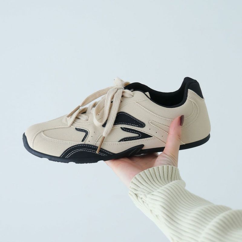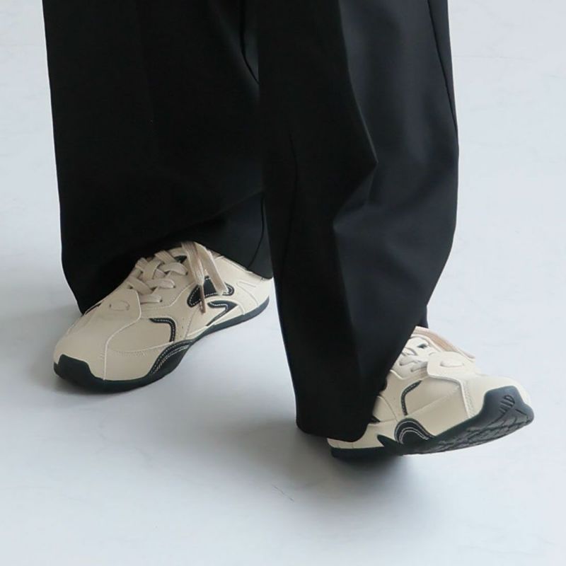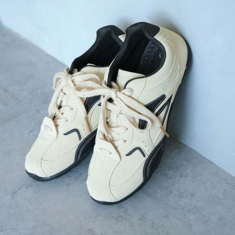 ・異素材×バイカラーデザインが、足元に“今っぽさ”をプラスしてくれるレースアップスニーカー!