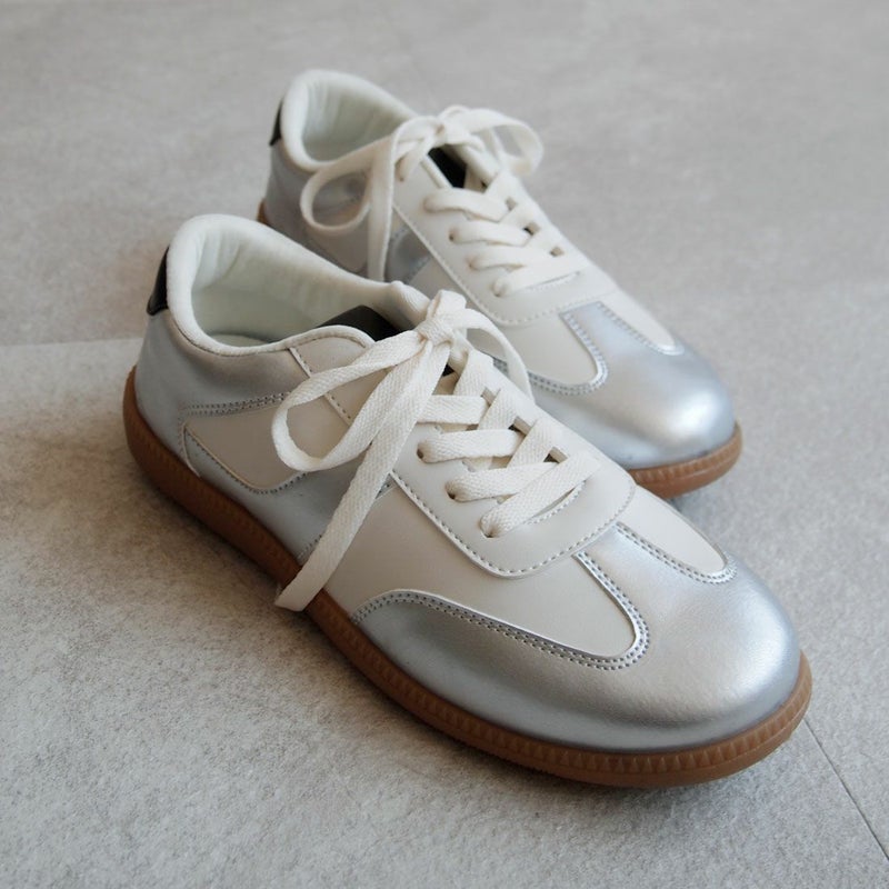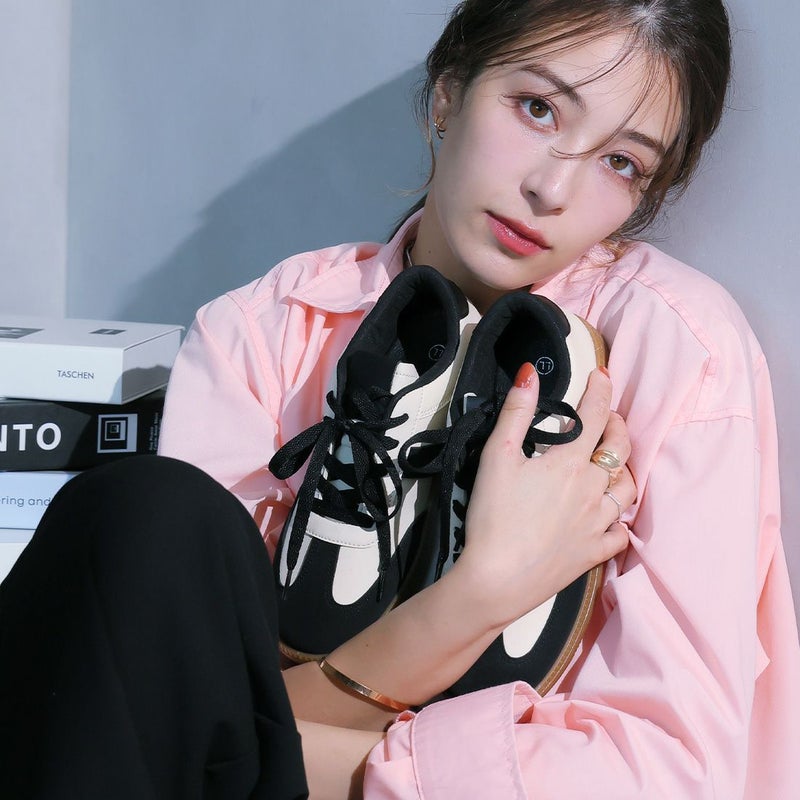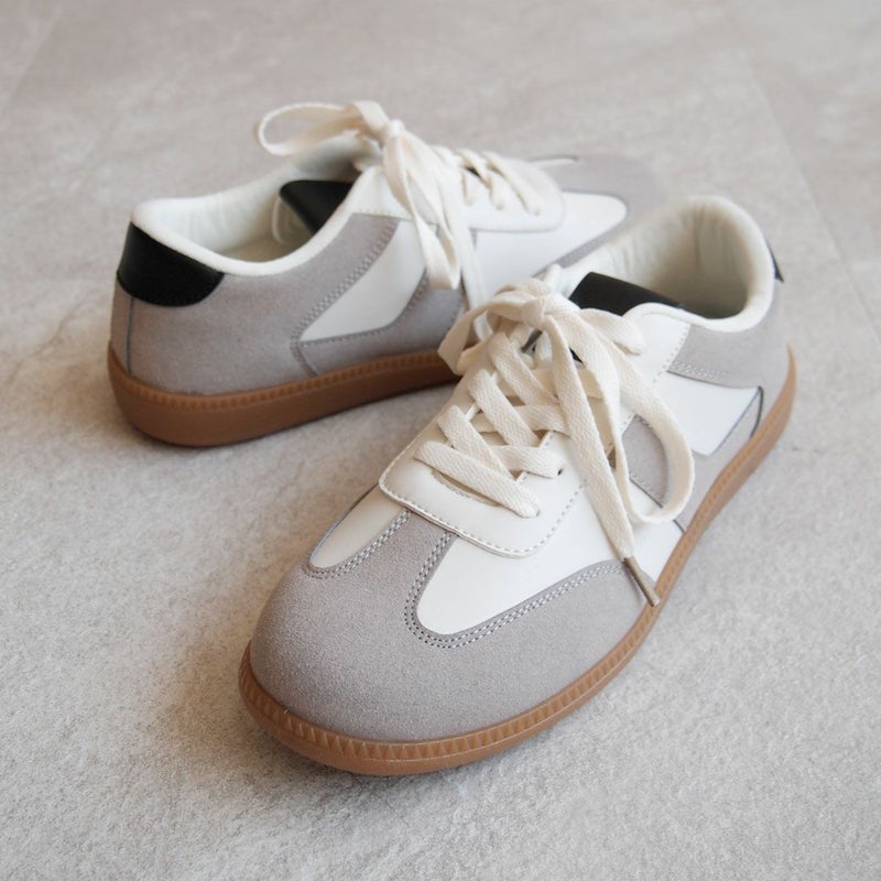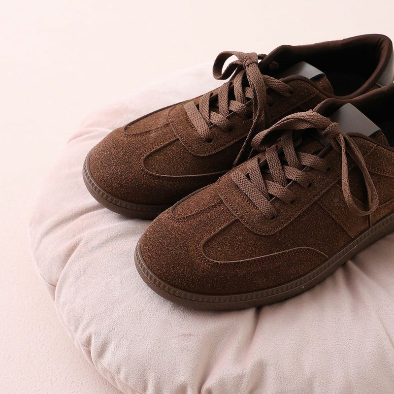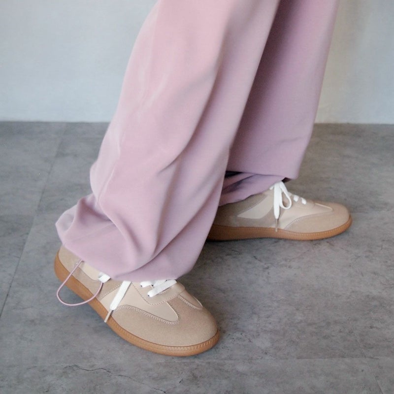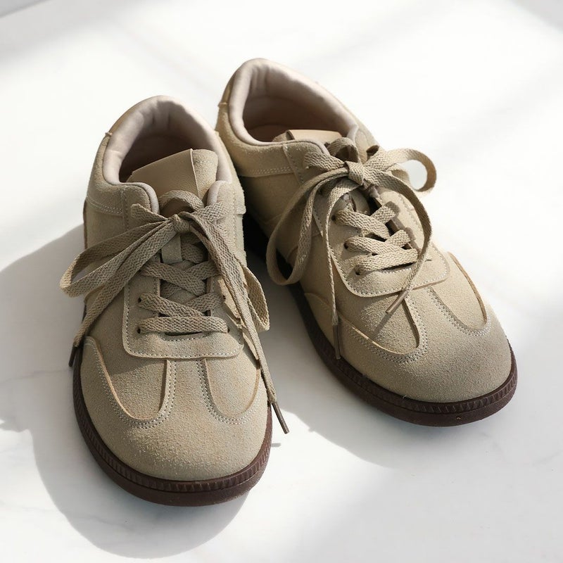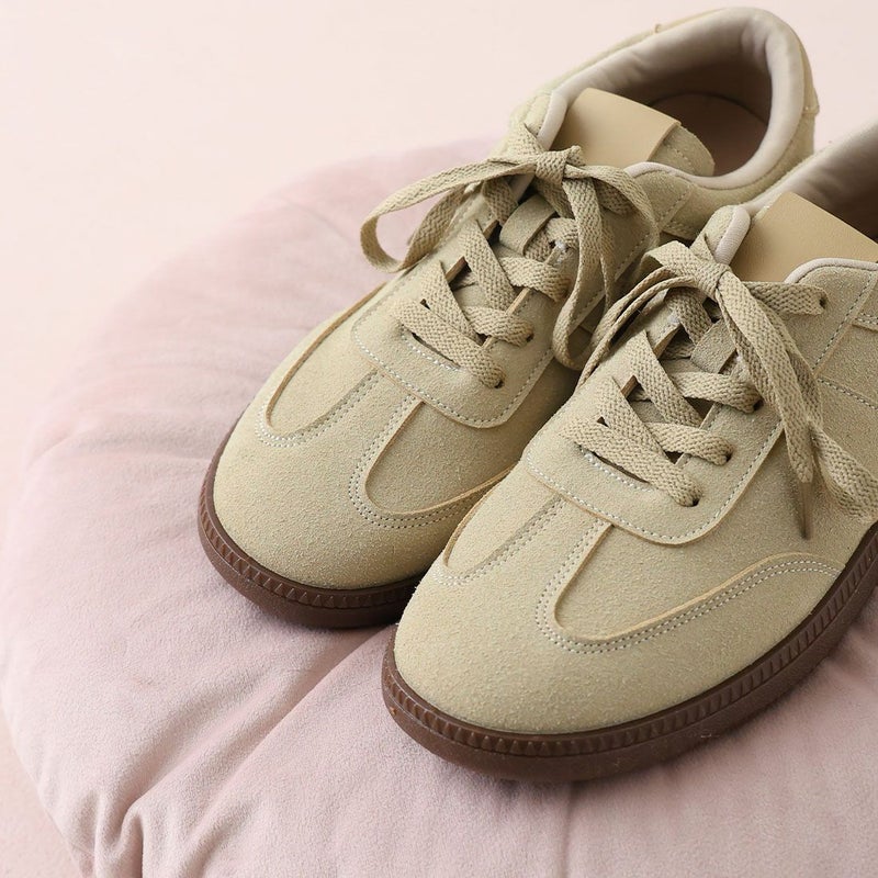 ・目を引くスエードTトゥデザインのレースアップスニーカー!