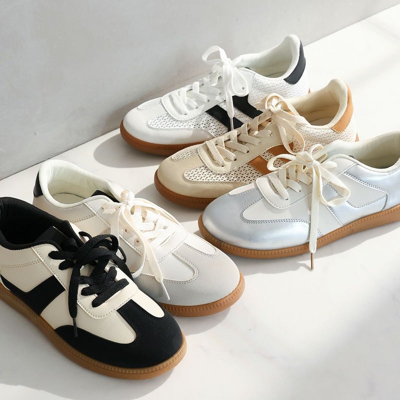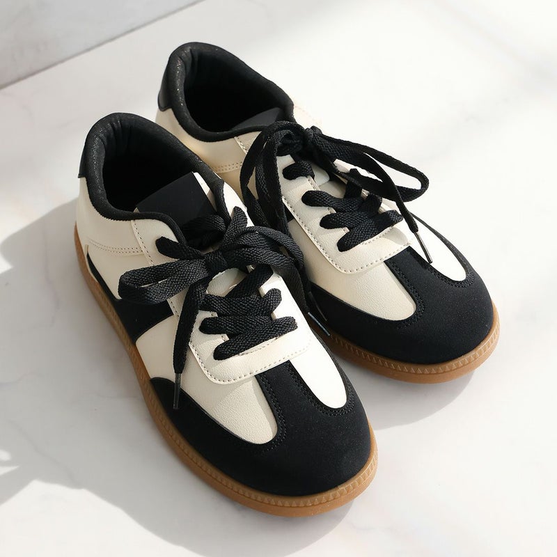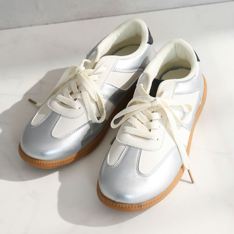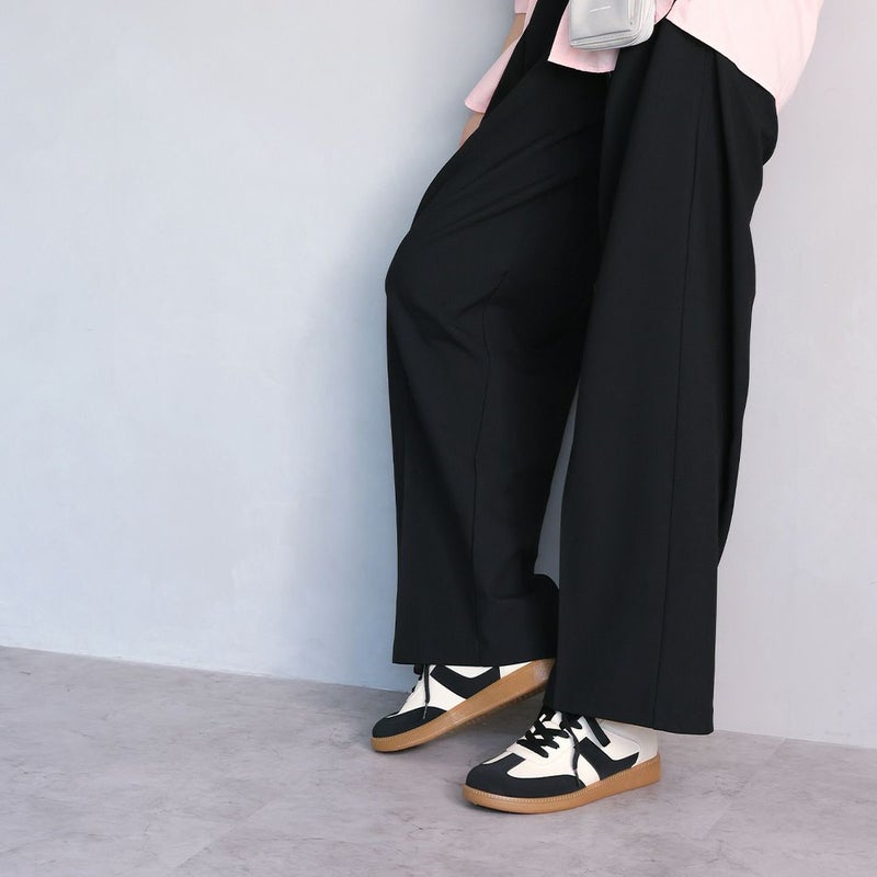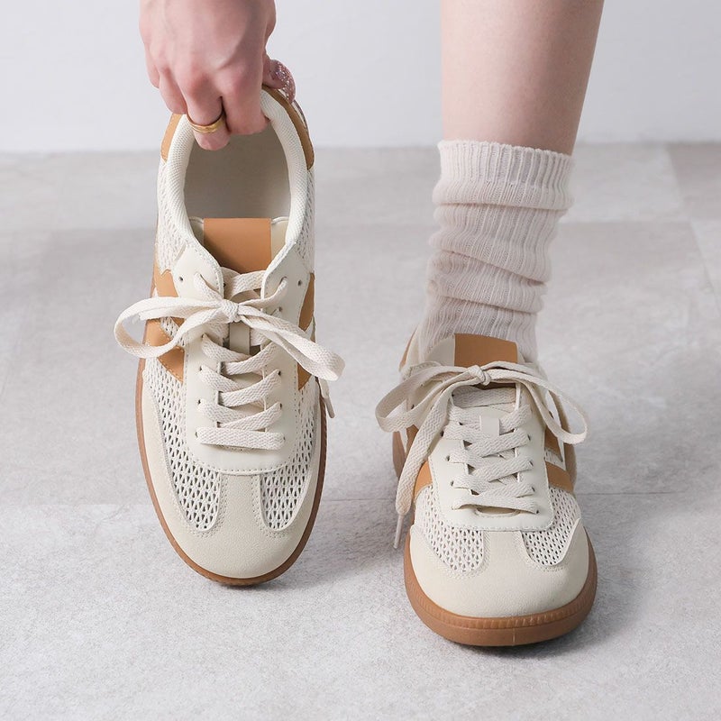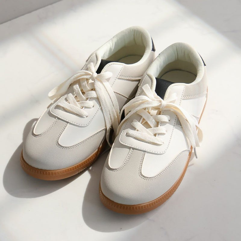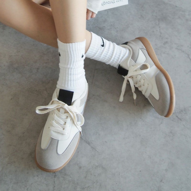 ・目を引くスエードTトゥデザインのレースアップスニーカー!
