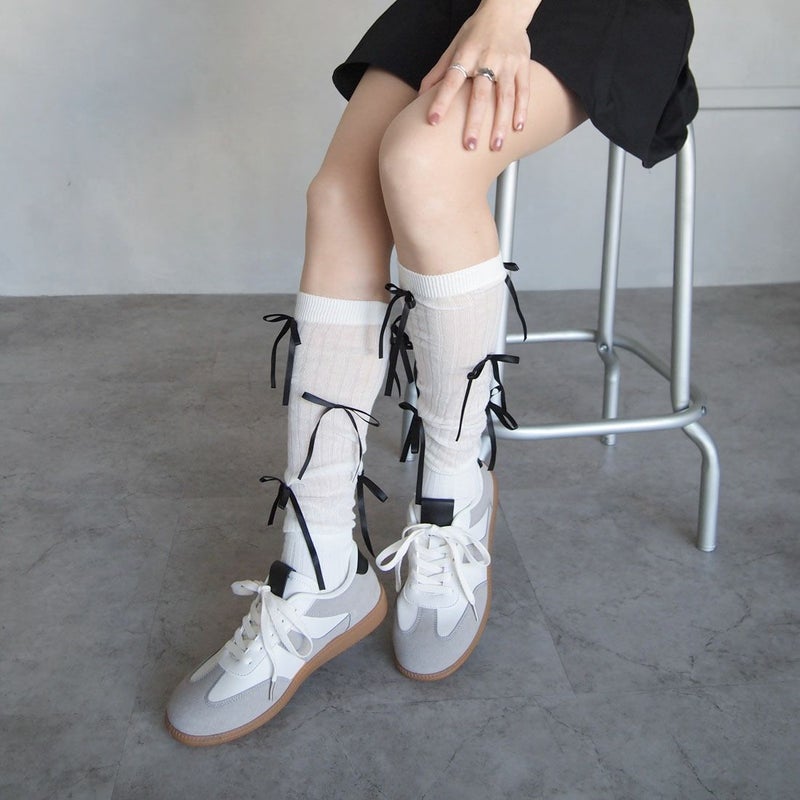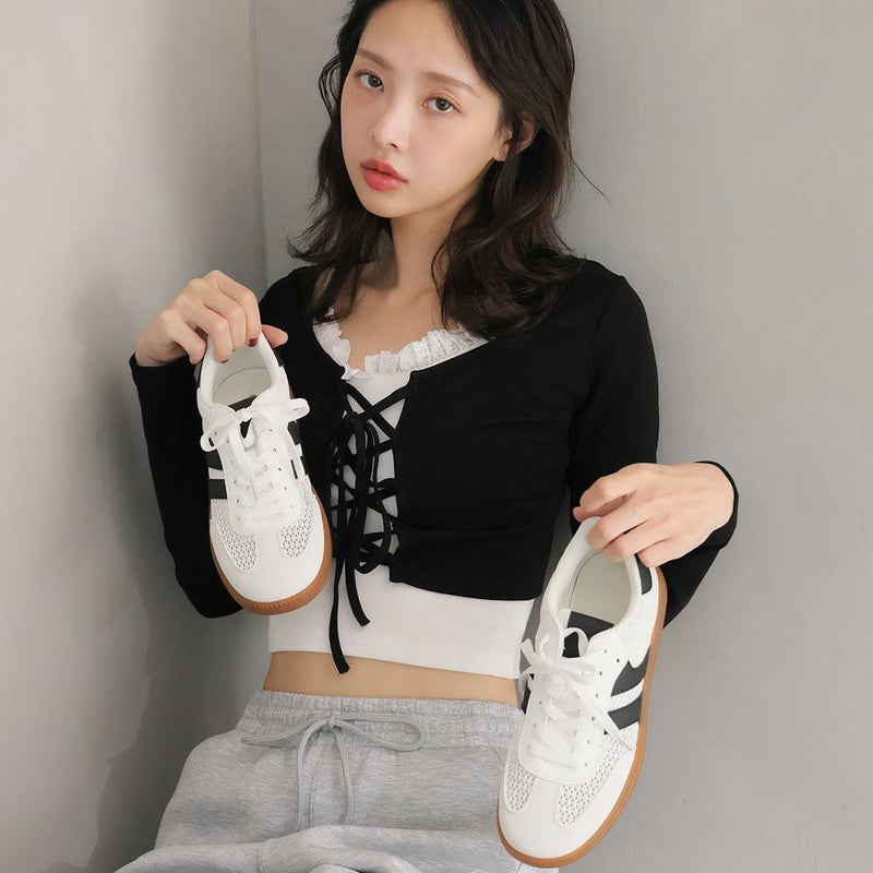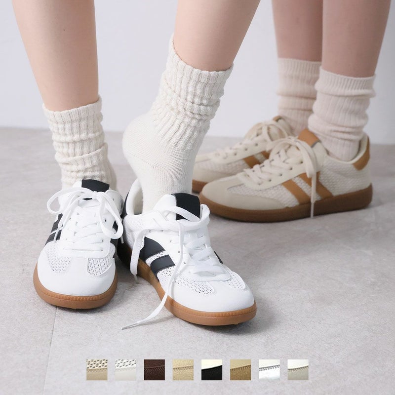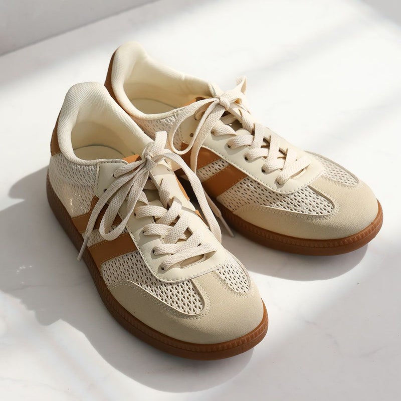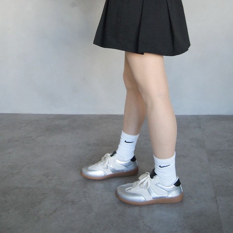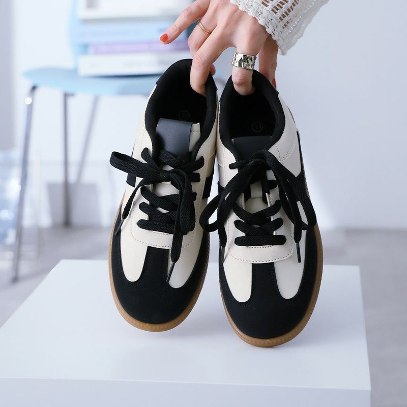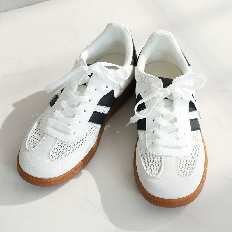 ・目を引くスエードTトゥデザインのレースアップスニーカー!