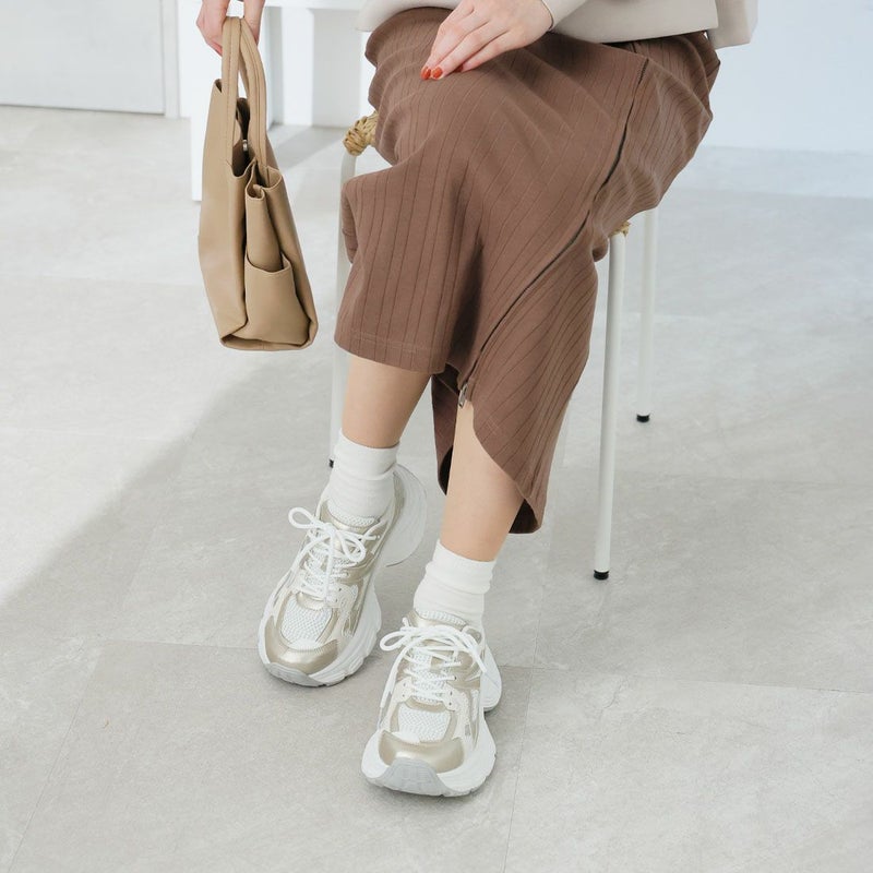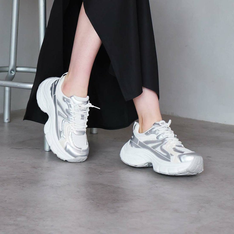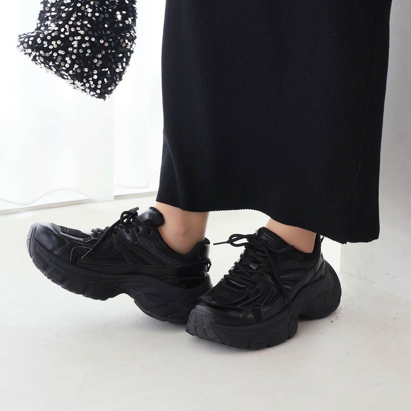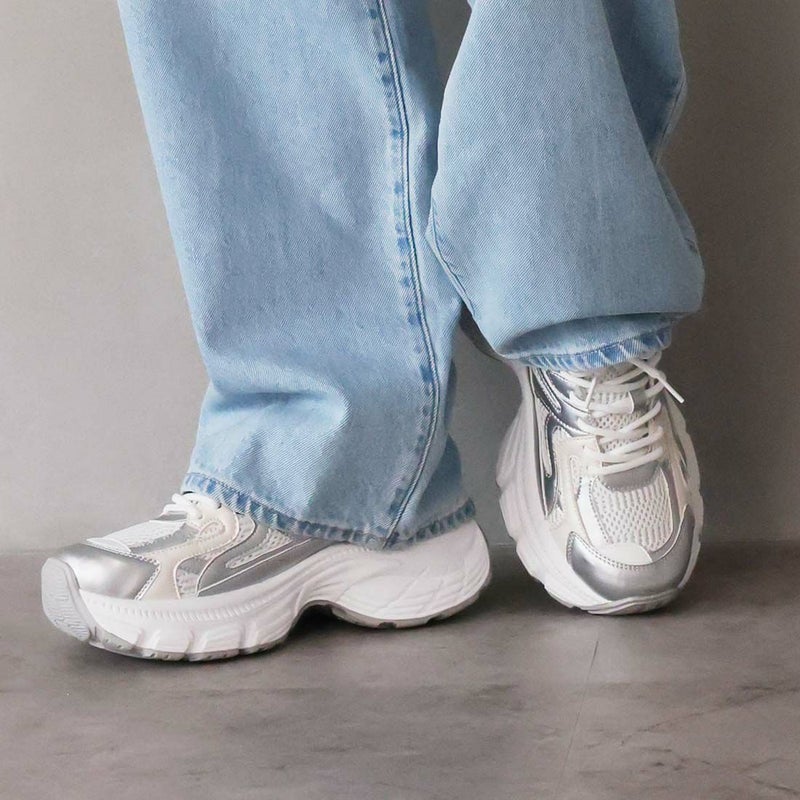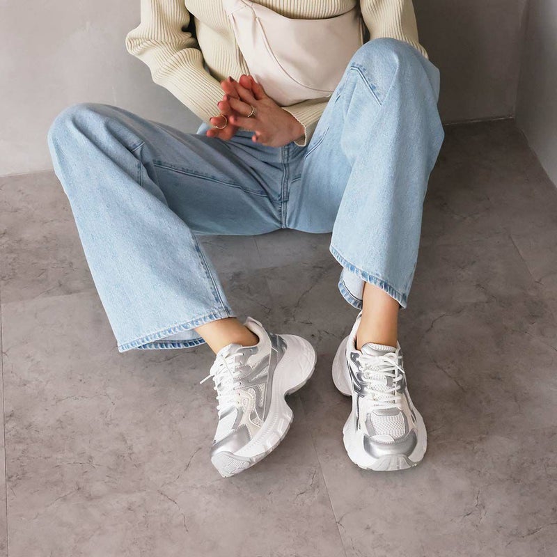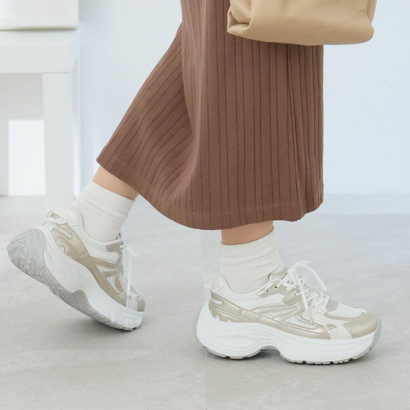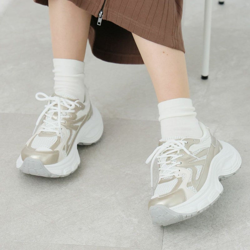 ・異素材コンビがアクセントのレースアップダッドスニーカー!