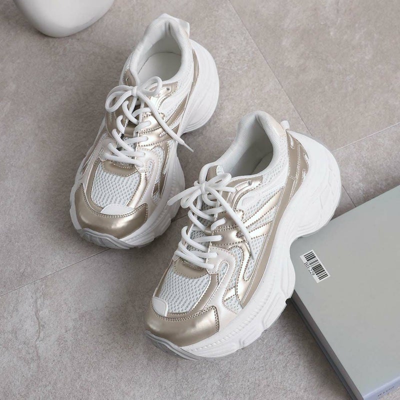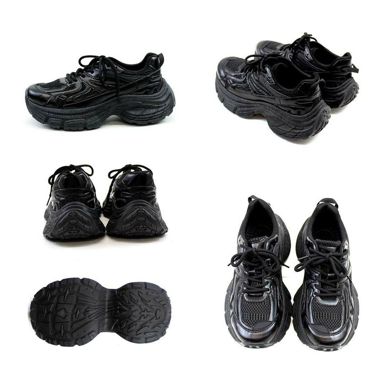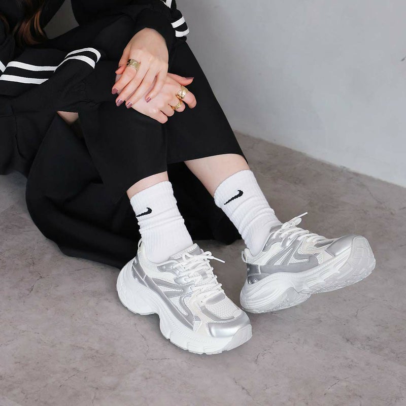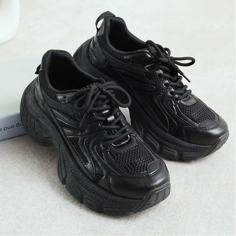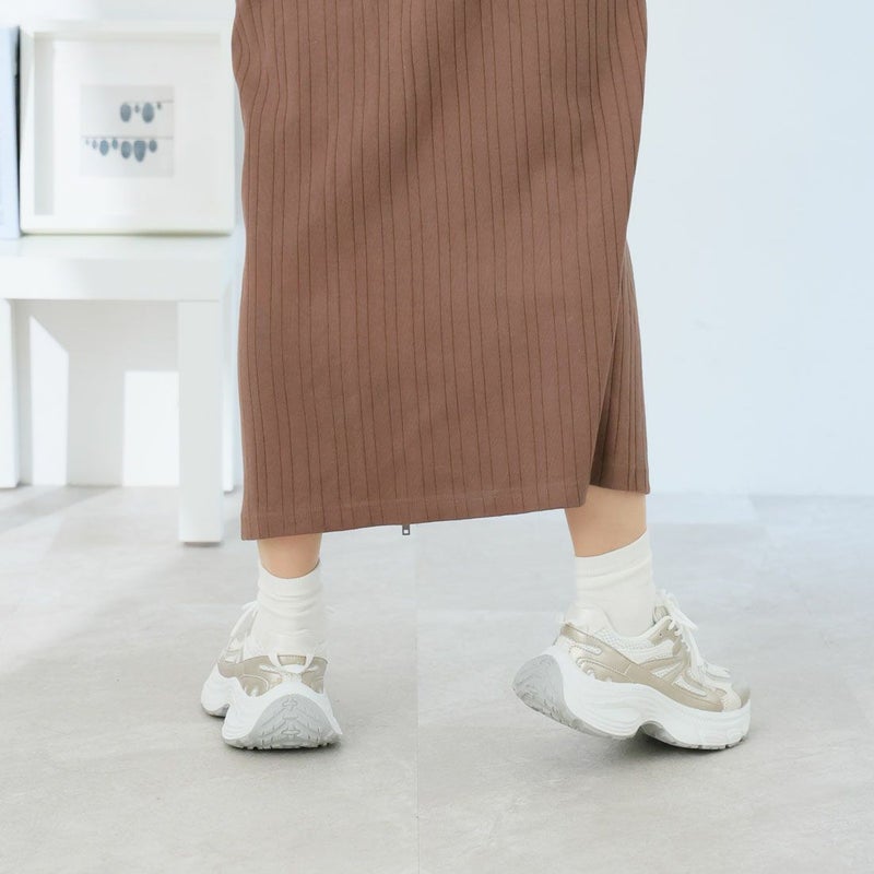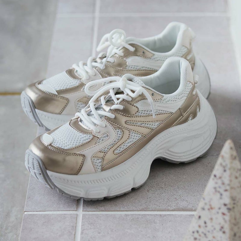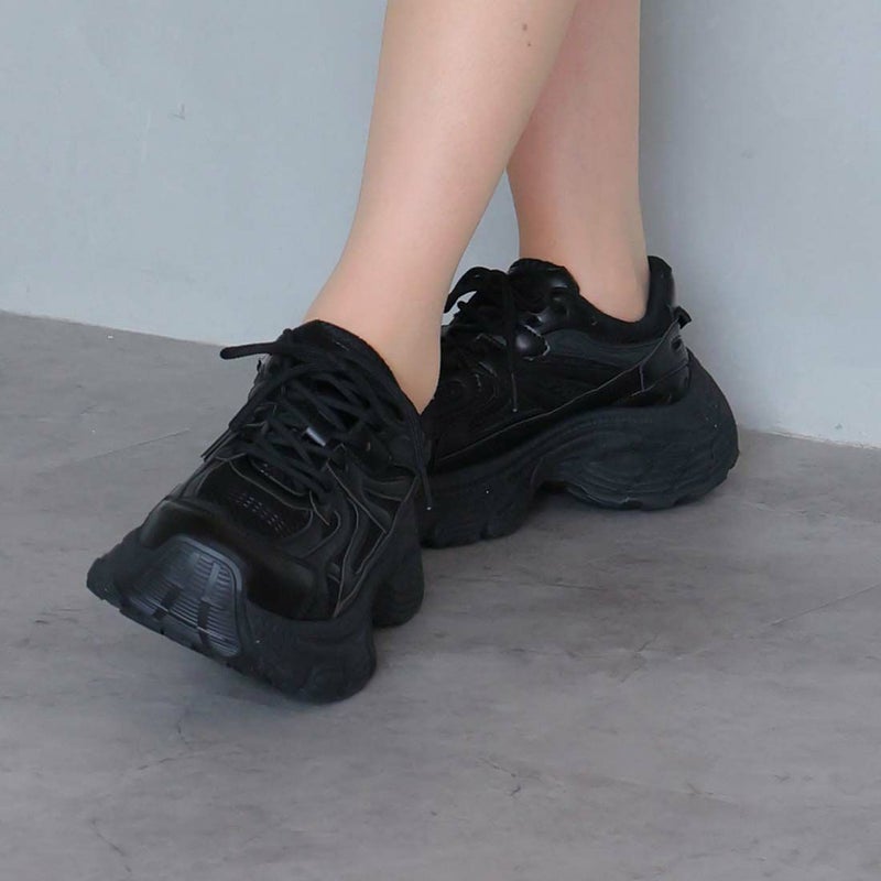 ・異素材コンビがアクセントのレースアップダッドスニーカー!