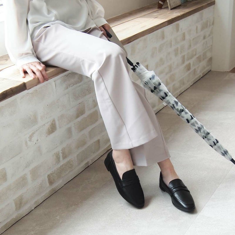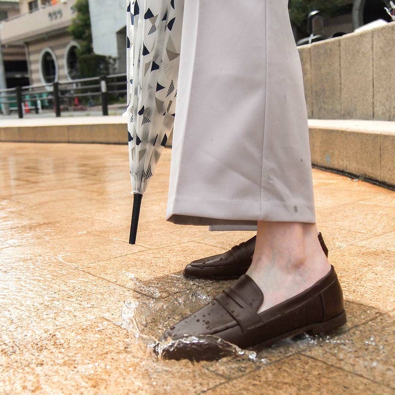 ローファーデザインならレインシューズには見えずにクラシックな足元を演出できるのでキチンと感もプラスできる。