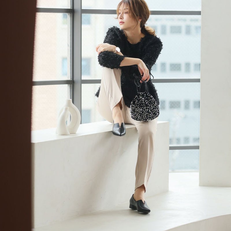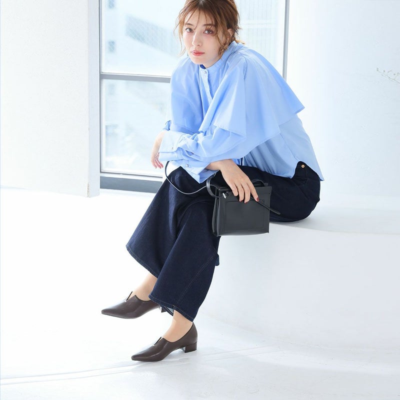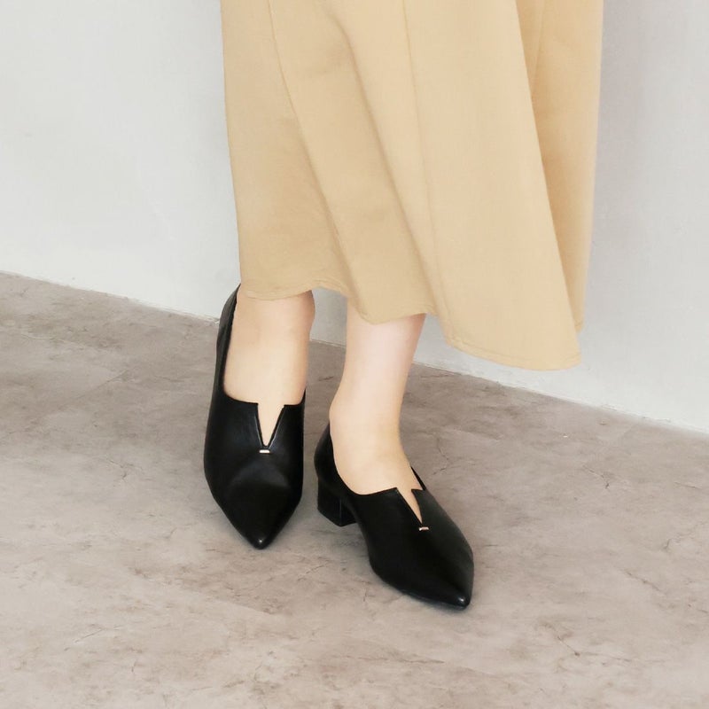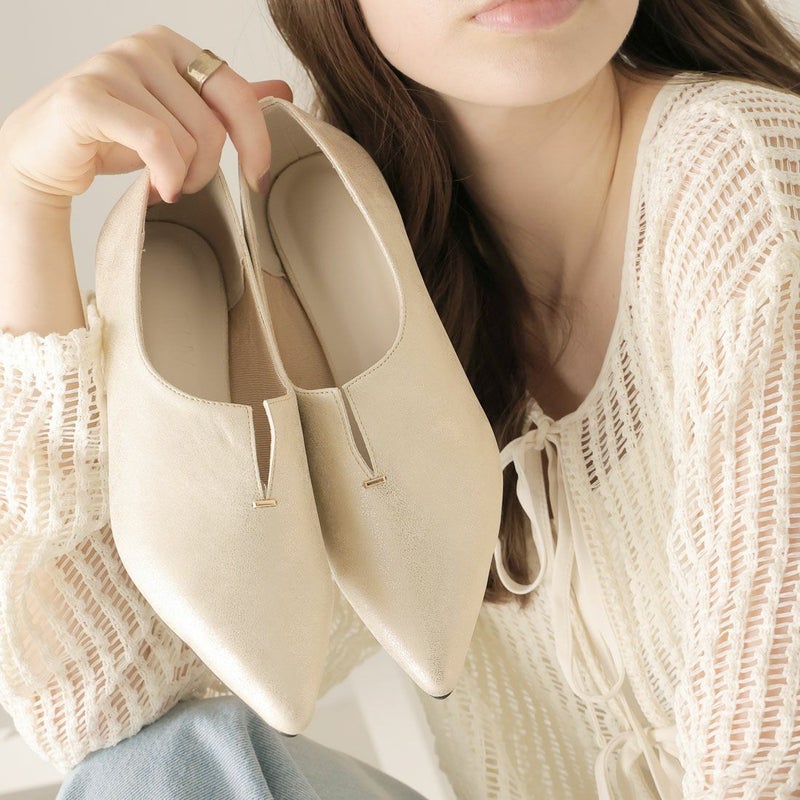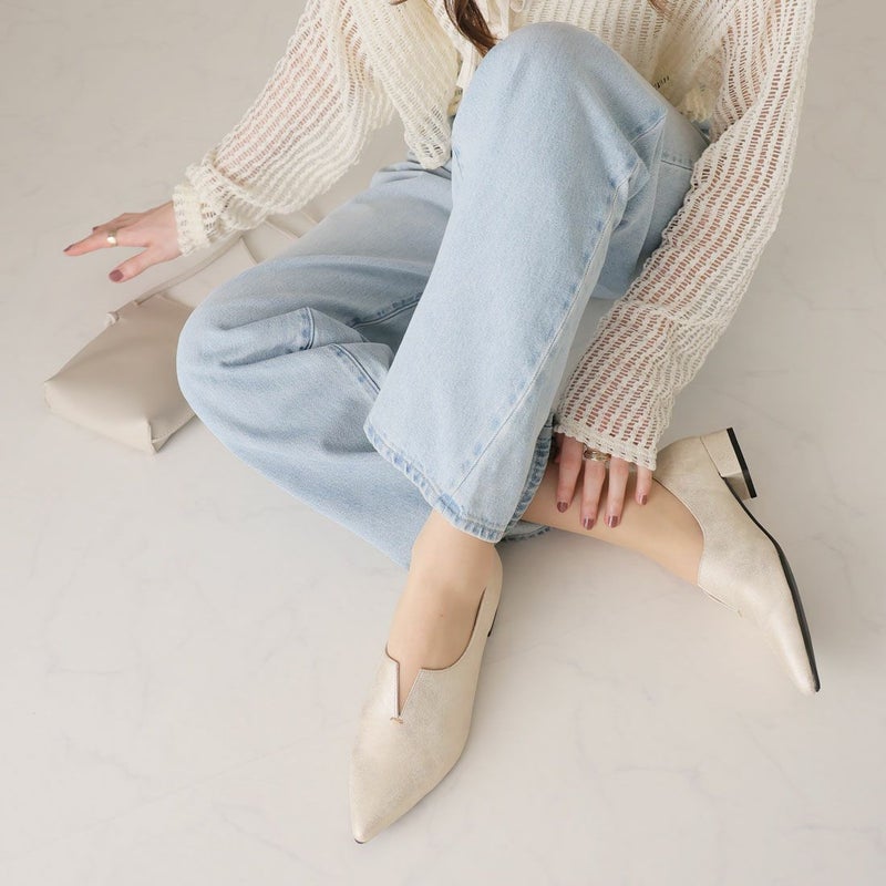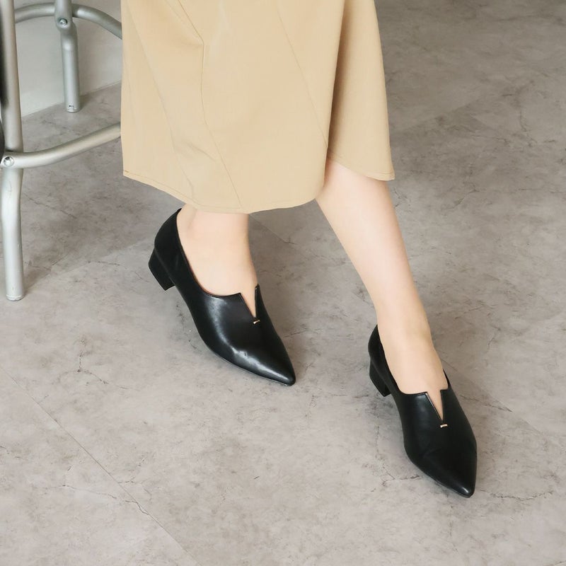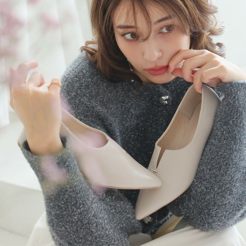 ・ポインテッドトゥ×ローヒールで甘くなりすぎない上品フォルム。