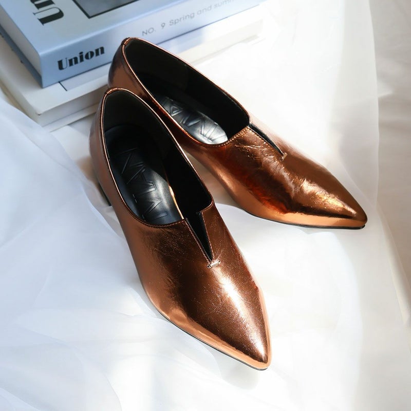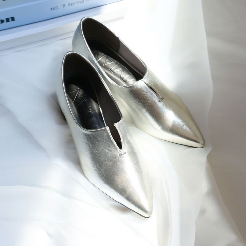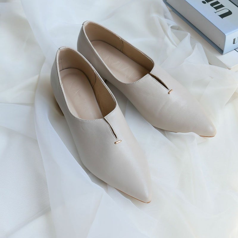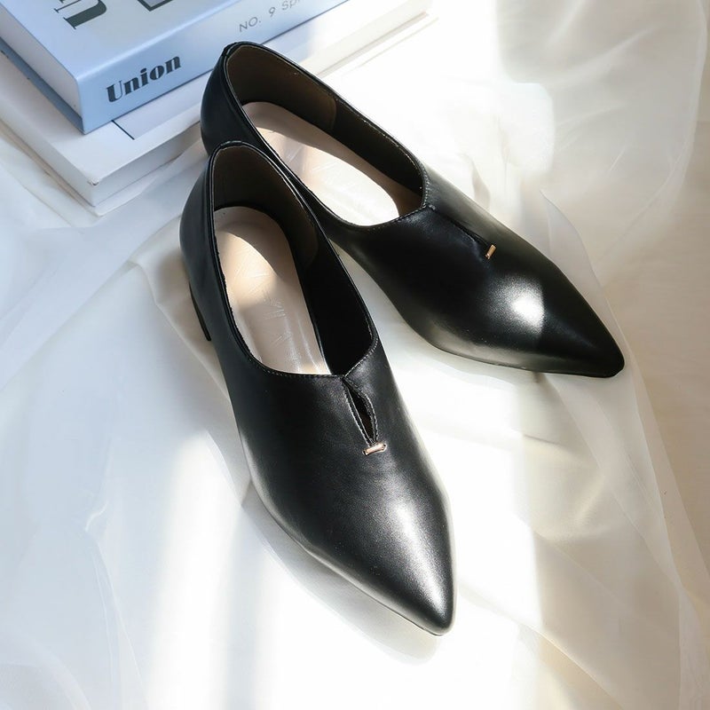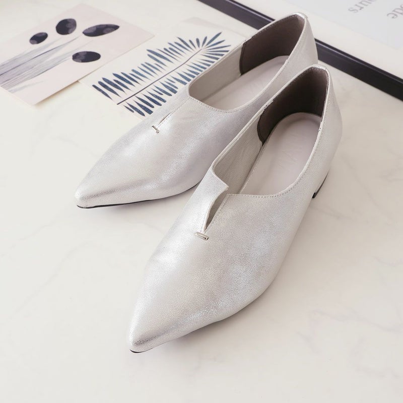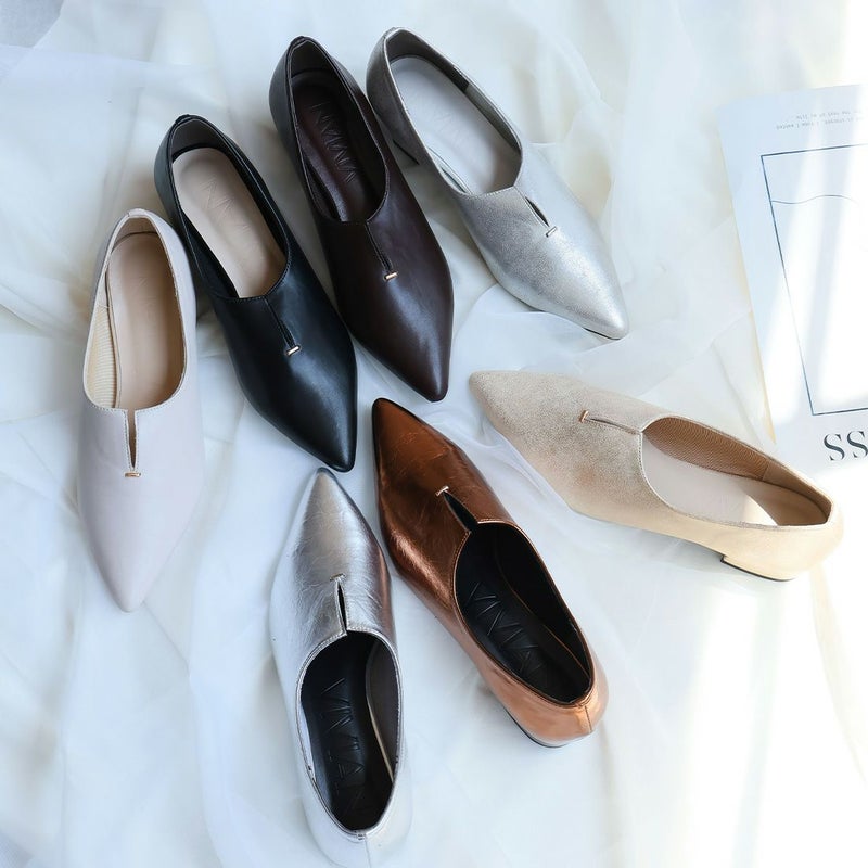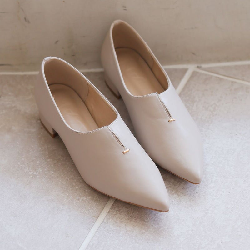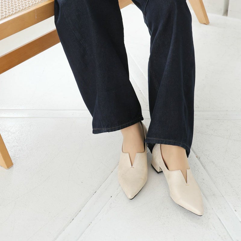 ・ポインテッドトゥ×ローヒールで甘くなりすぎない上品フォルム。