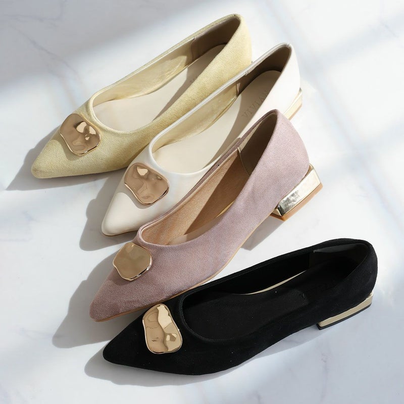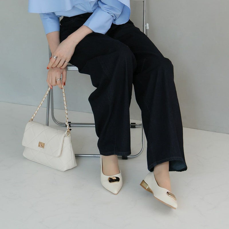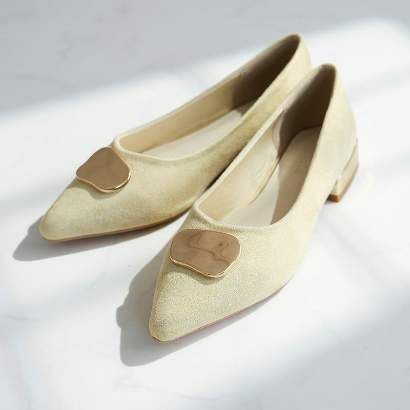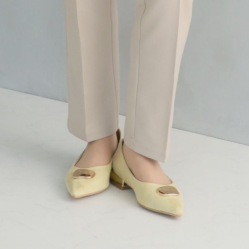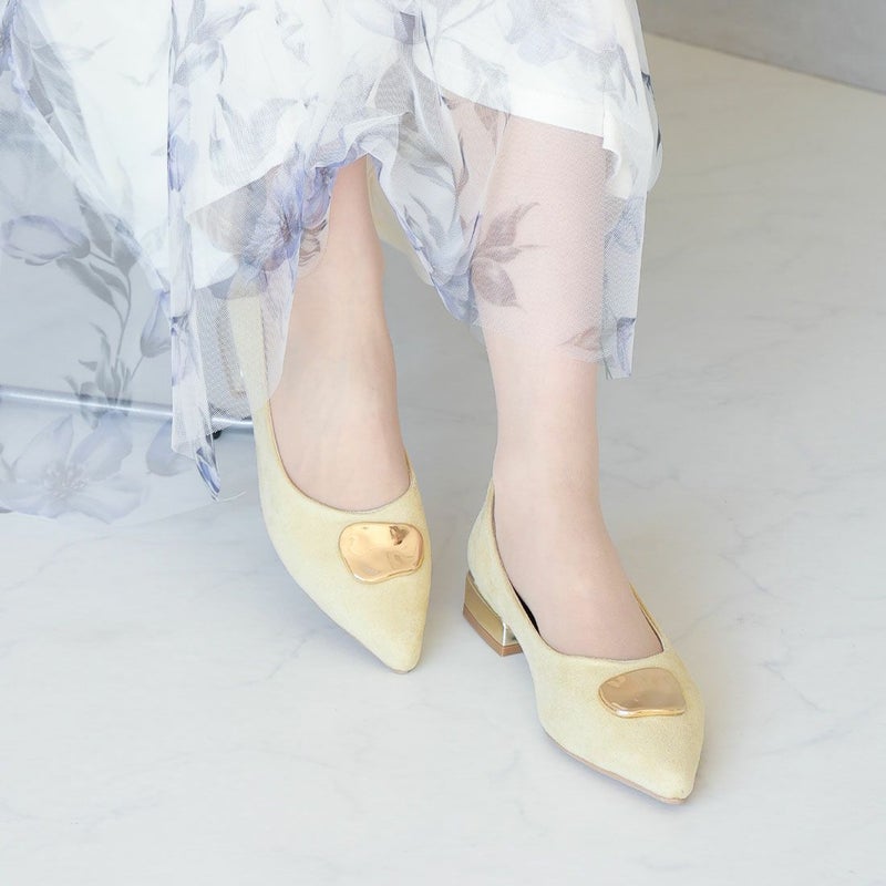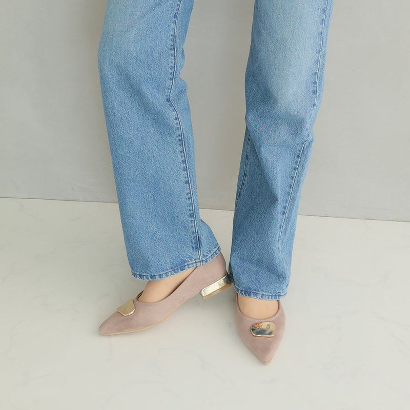 ・ポインテッドトゥ×Vカットで甘くなりすぎず上品なシルエット
