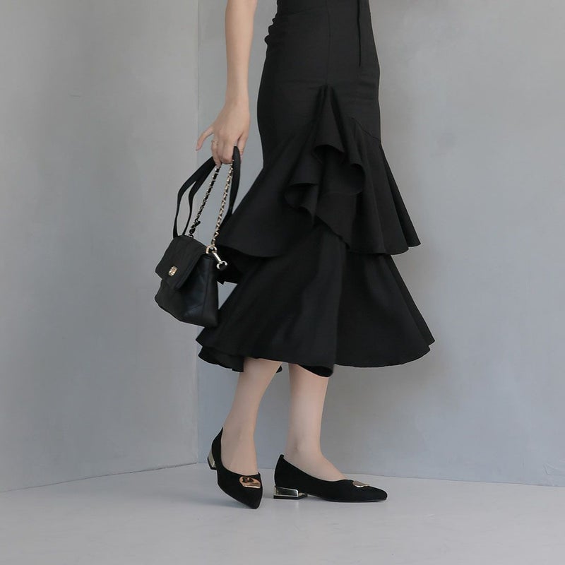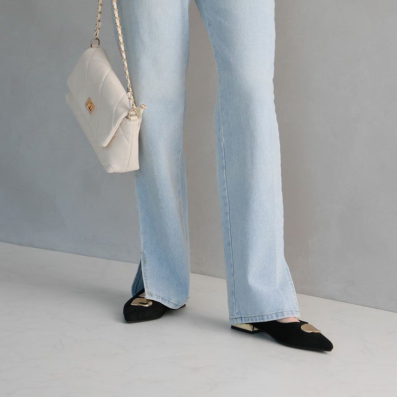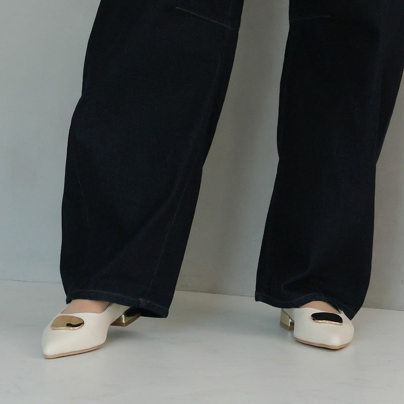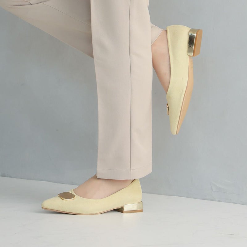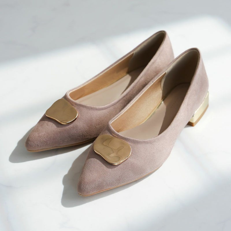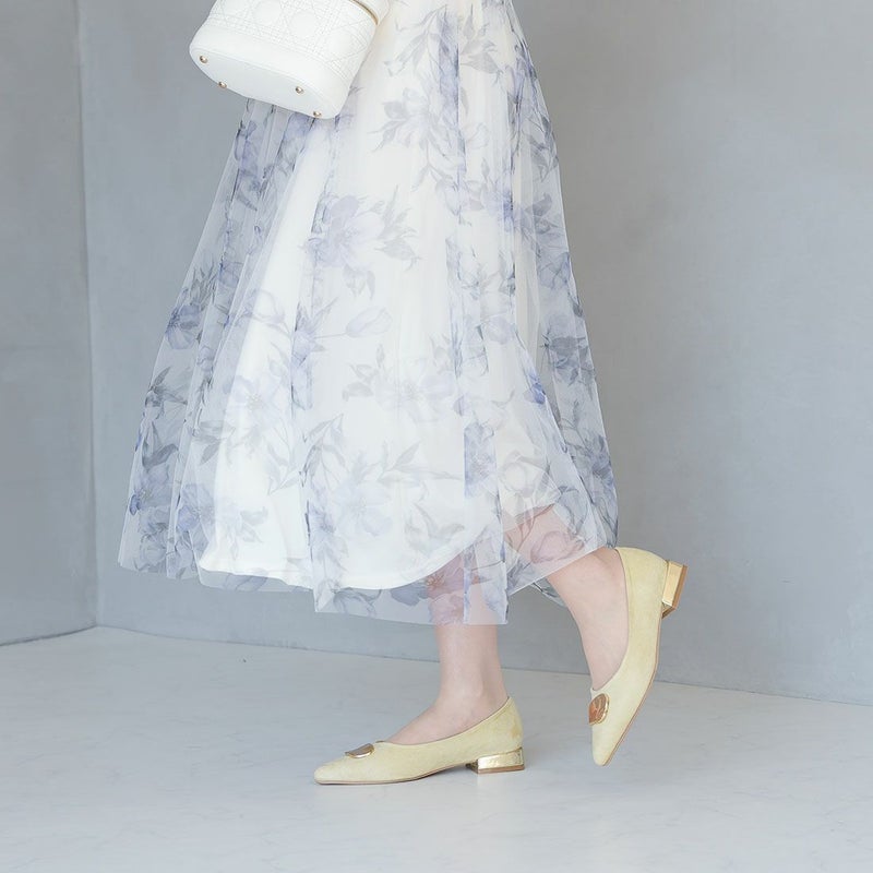 ・ポインテッドトゥ×Vカットで甘くなりすぎず上品なシルエット