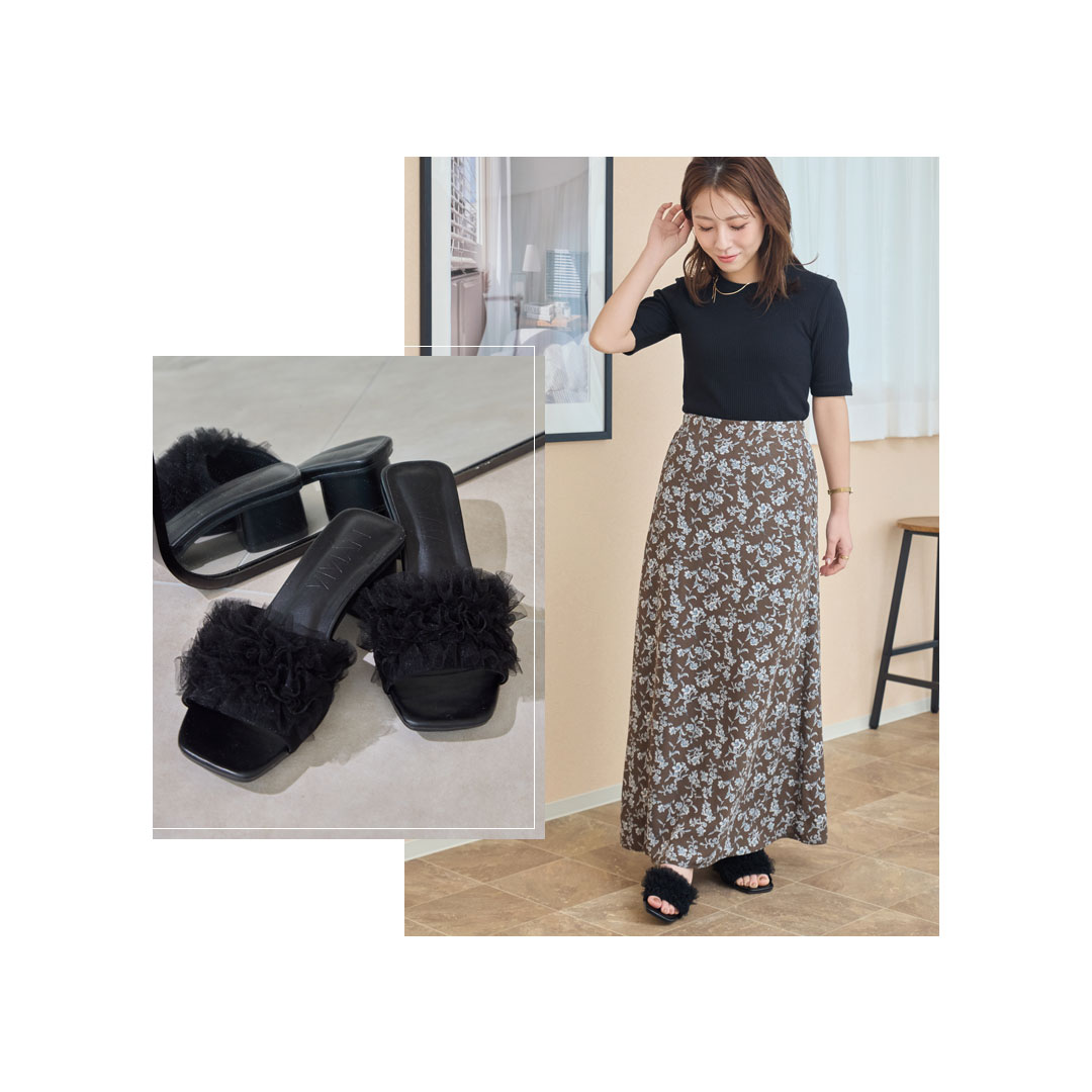 人気インフルエンサーyumi.さんとVIVIAN COLLECTIONとのコラボレーション第7弾!過去6回のコラボアイテムは即完売!絶大な支持を得ているyumi.さんのこだわりの詰まった今季トレンドのチュールサンダルが登場!
