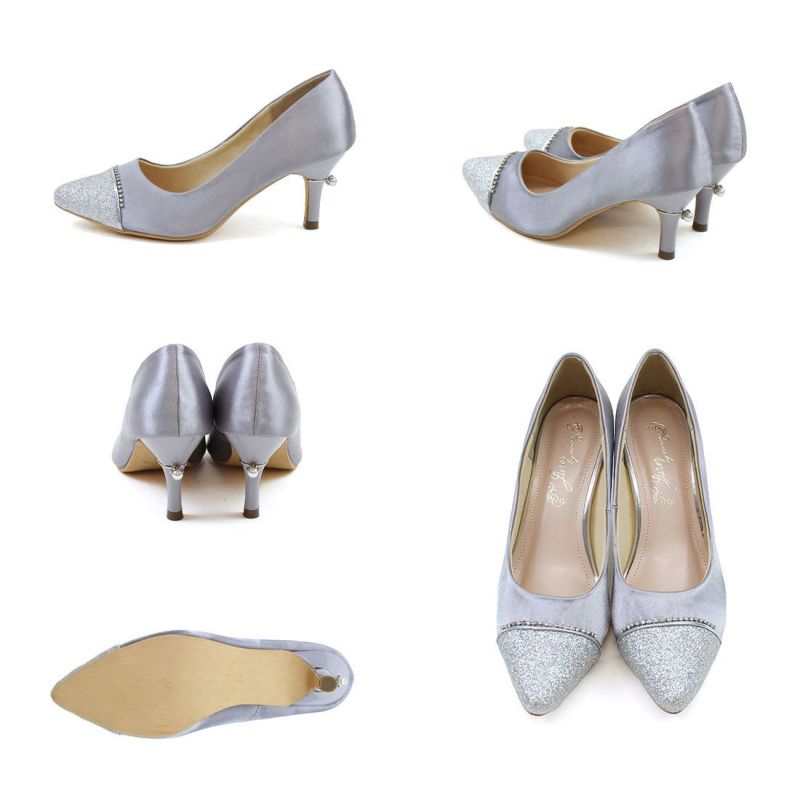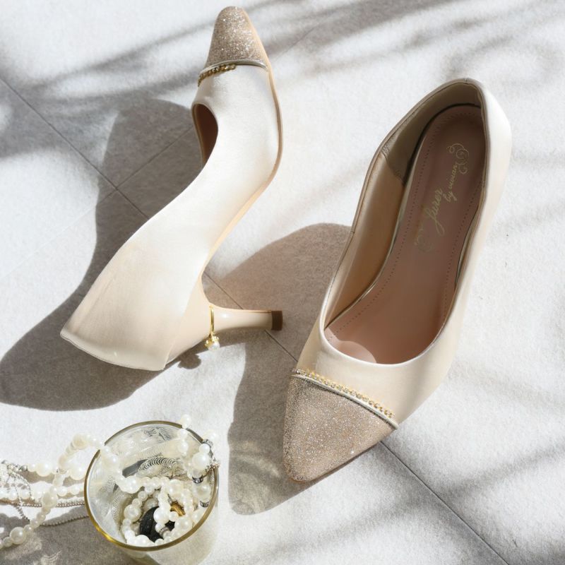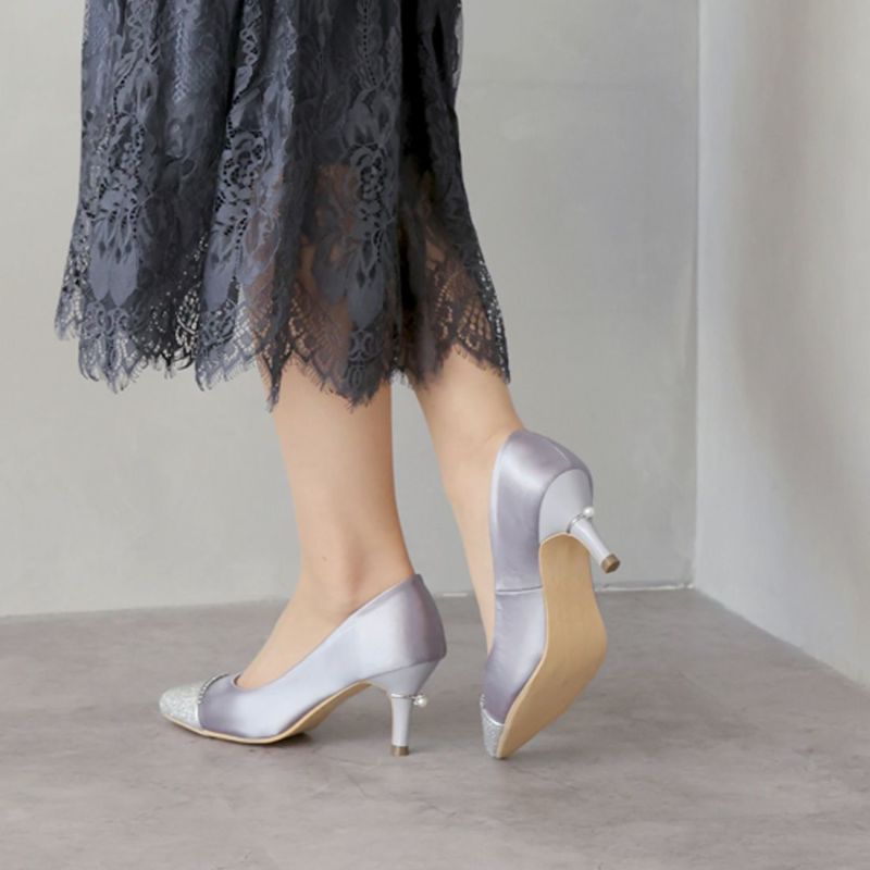 ・光沢のあるサテンとさりげないビジューレーンがエレガントな雰囲気をプラス