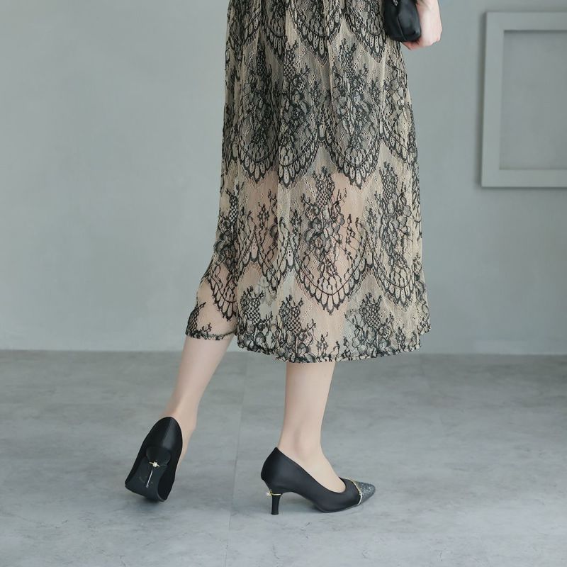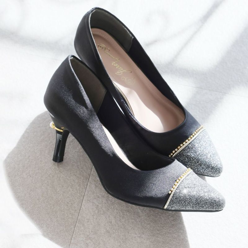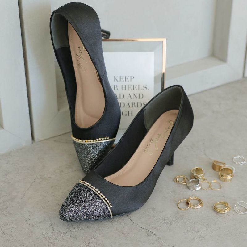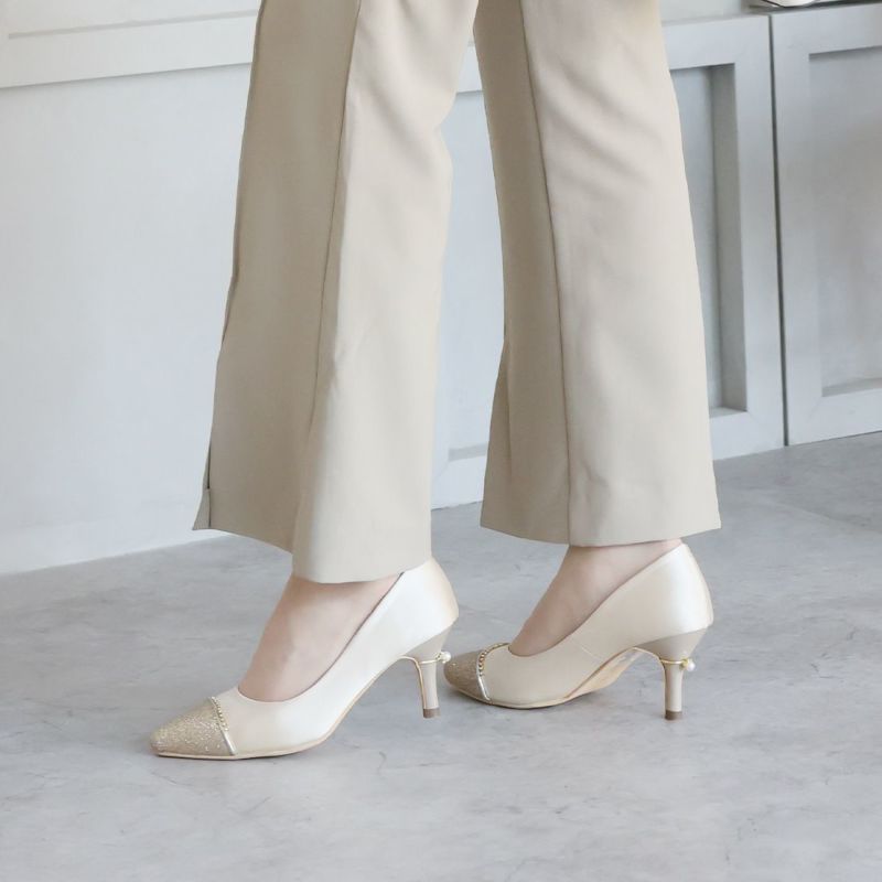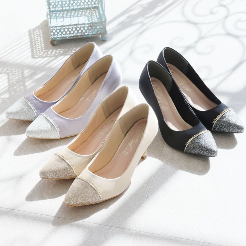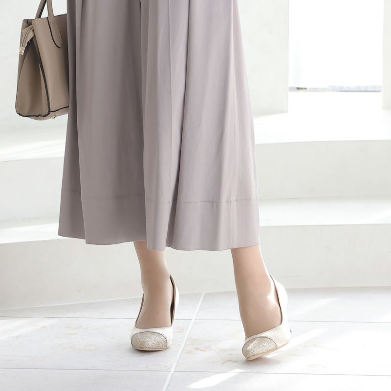 ・ラグジュアリー感漂うグリッター素材&パールリング付きヒールで後ろ姿まで隙のない素敵コーデに。