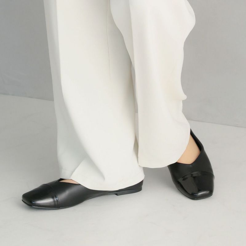 ・スクエアトゥ×Vカットで履くだけで大人のこなれ感を演出。