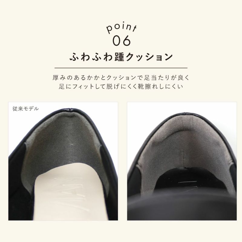 【3】靴擦れしにくいふわふわ踵クッションは、足にフィットして脱げにくい