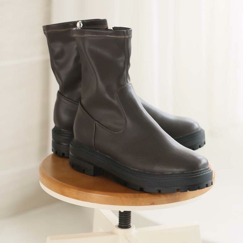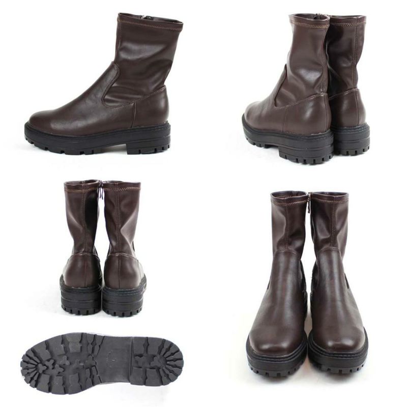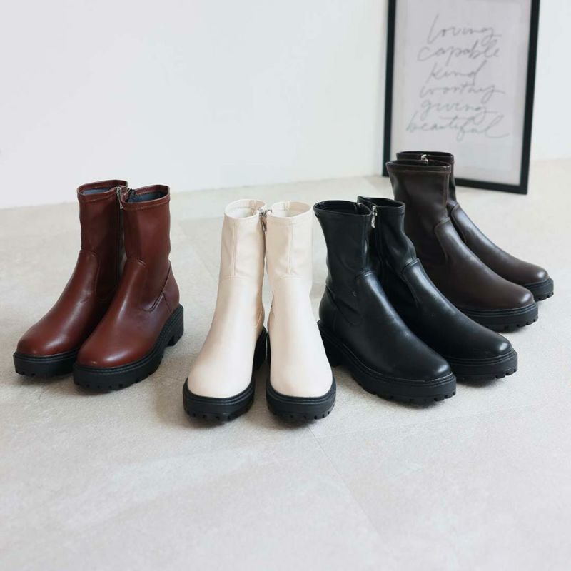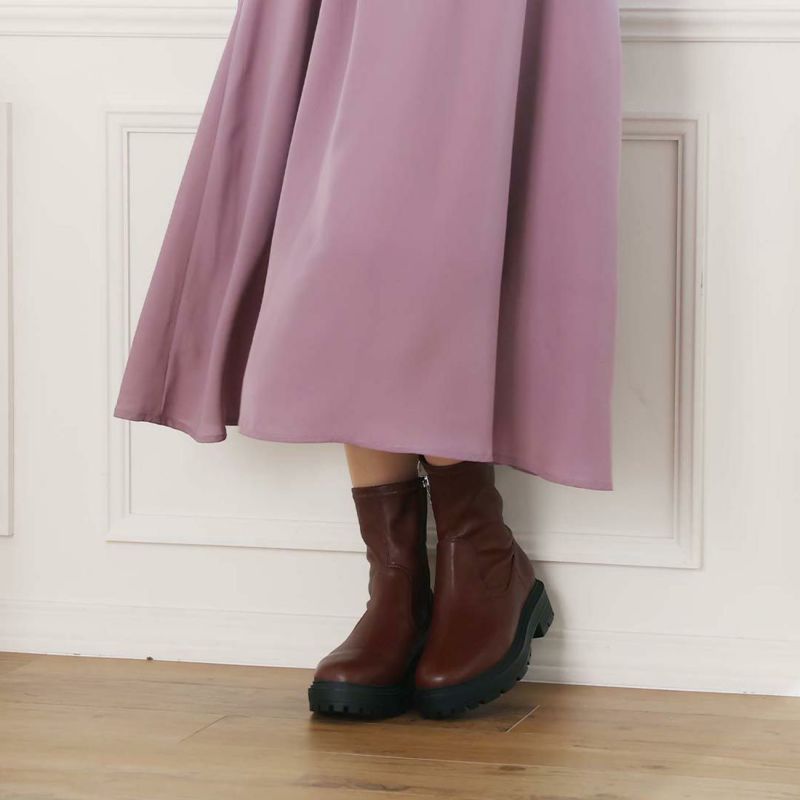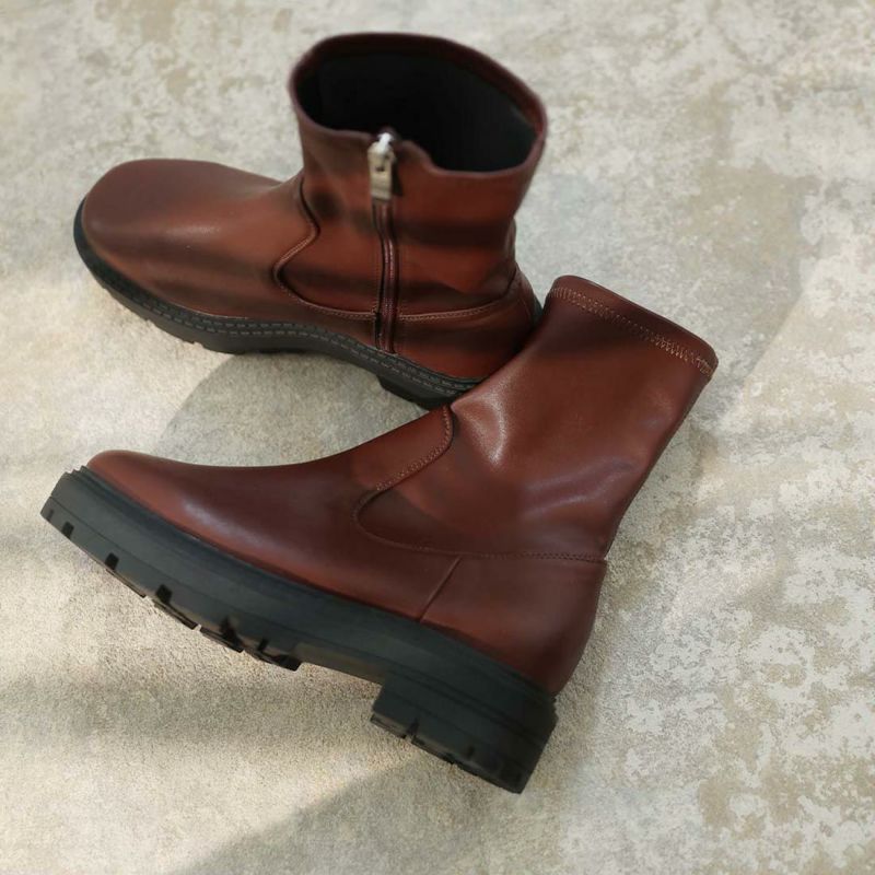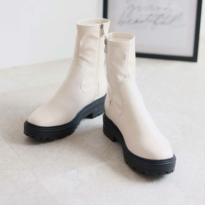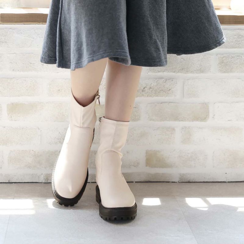 ・ゴツめデザインで足元にボリュームを持たせ、伸縮性のあるストレッチ素材が足にフィットし引き締まって見えるので、スタイルアップが期待できるアイテム。