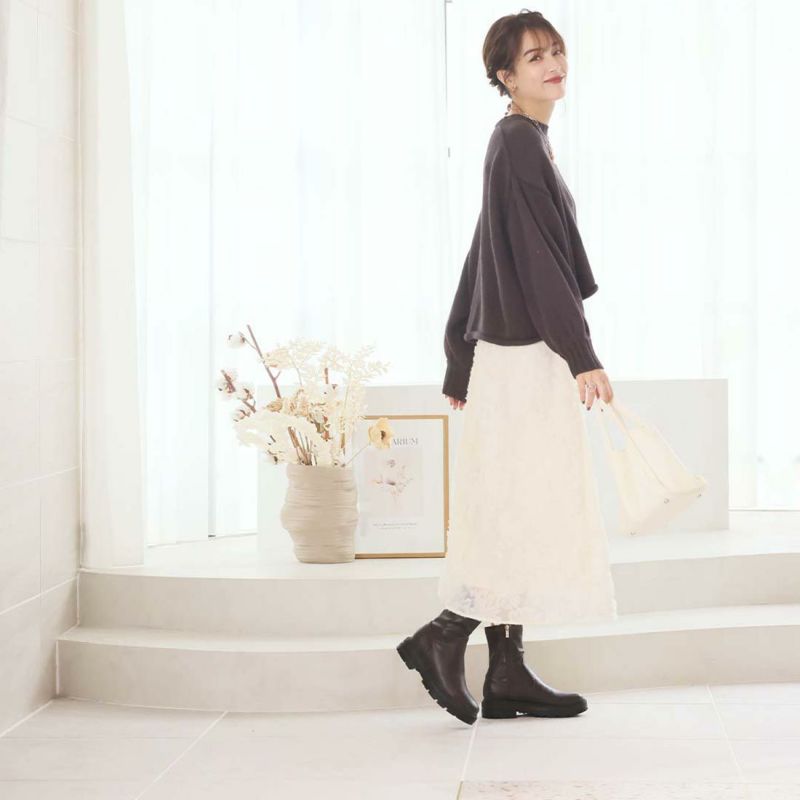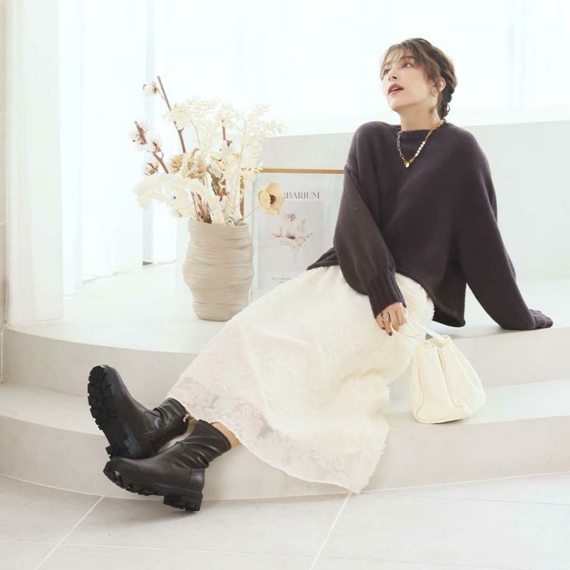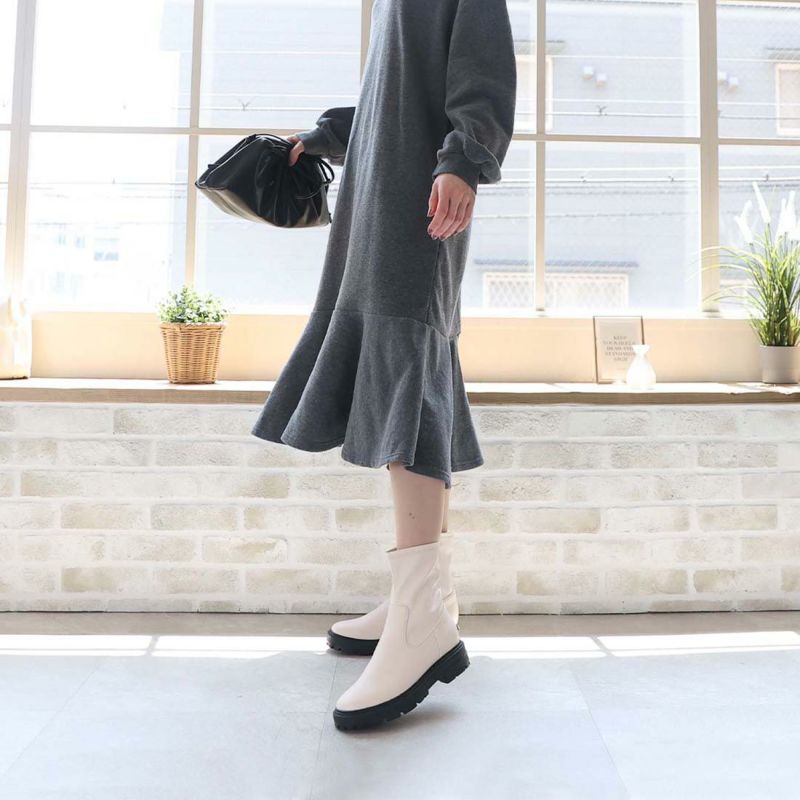 ガーリーやフェミニンスタイルにあえてゴツめの厚底デザインで外すことでコーデをピリッと引き締しめる甘辛ミックスコーデにもオススメ。