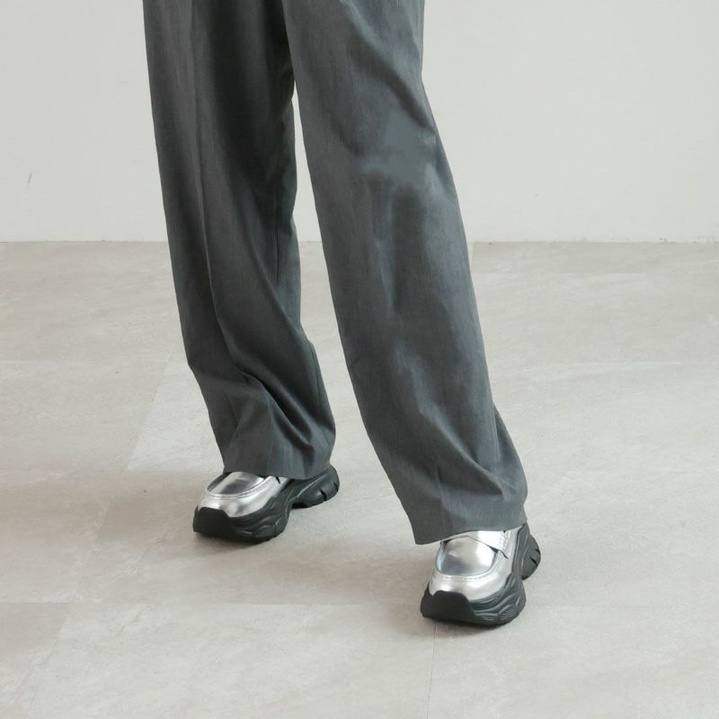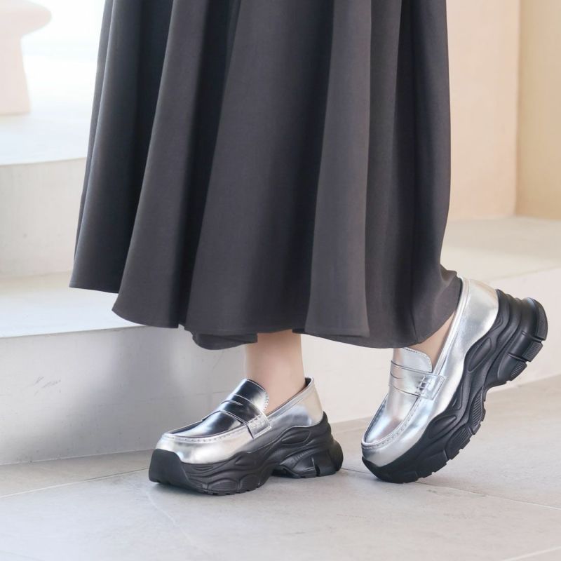 ・定番のコインローファーも厚底のスニーカーソールでハンサムライクな主役級アイテムに。