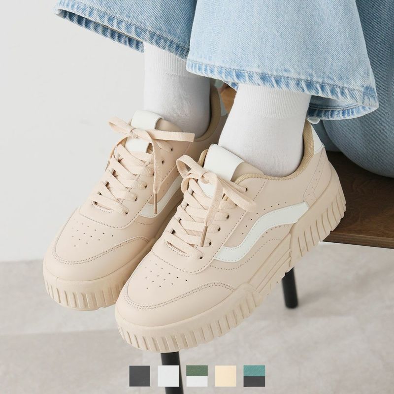 ・定番のレースアップデザインもコンビカラーで旬の足元に!