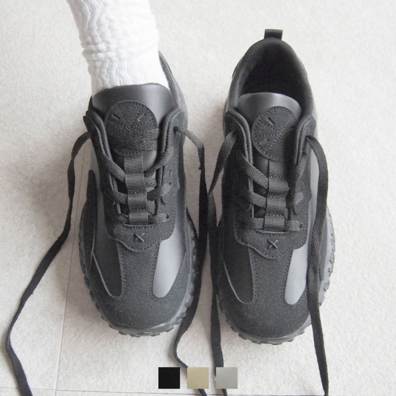 ・異素材コンビカラーのTトゥデザインレースアップスニーカー!