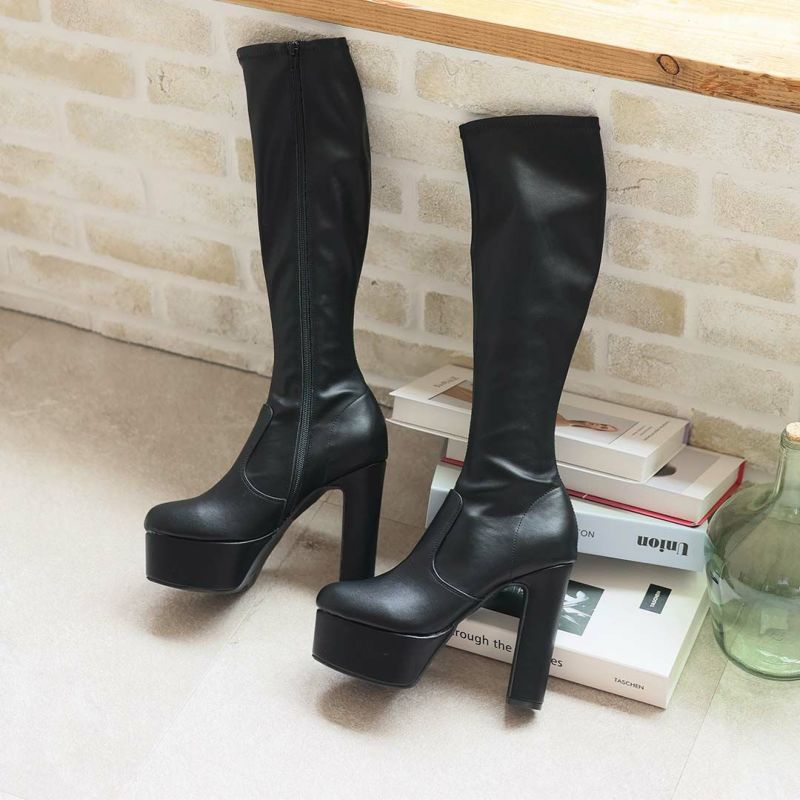 ・厚底プラットフォームデザインで足元も盛れるロングブーツ!