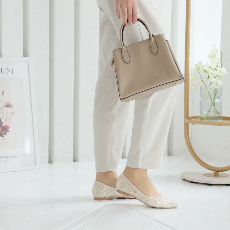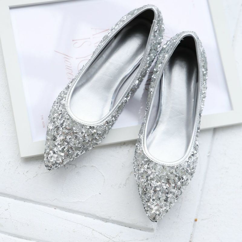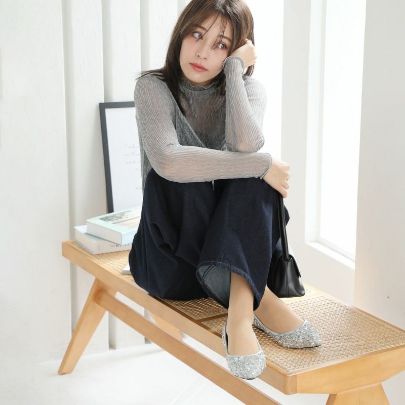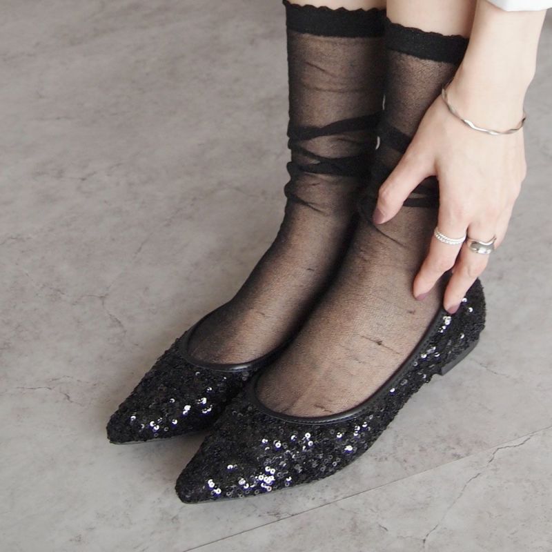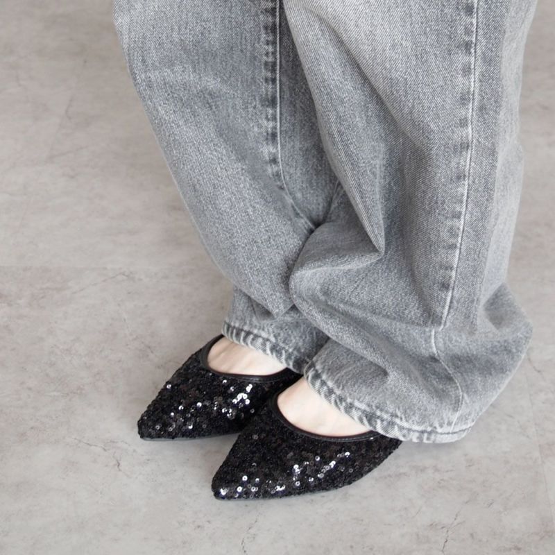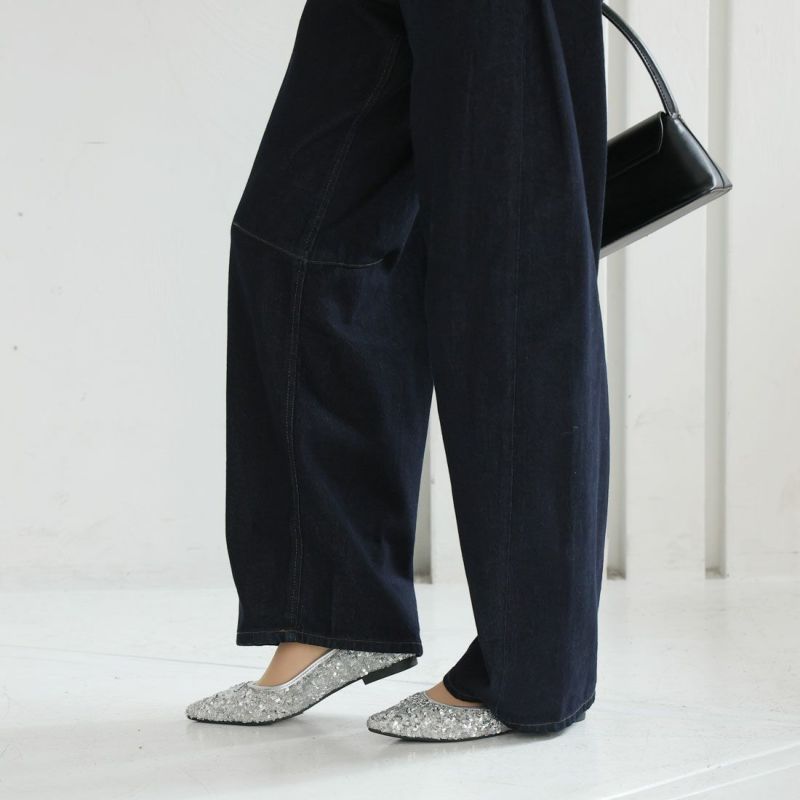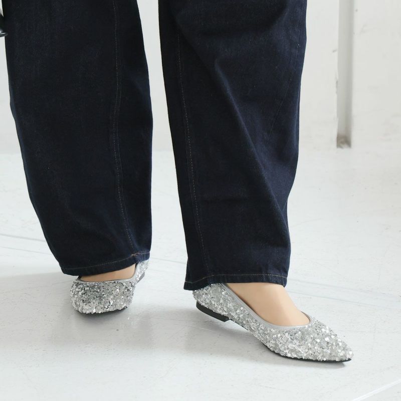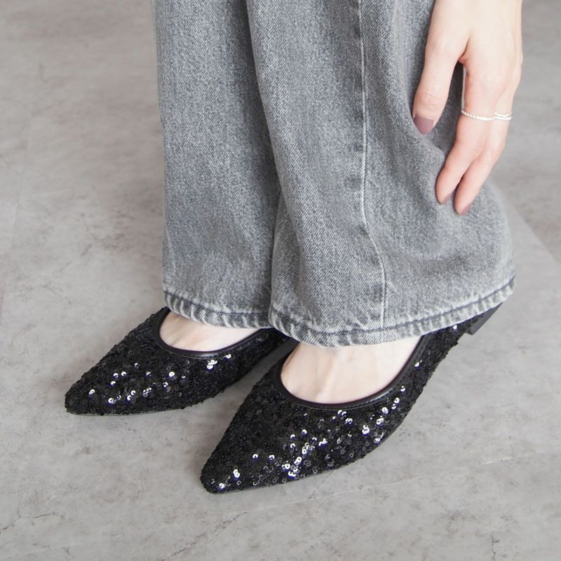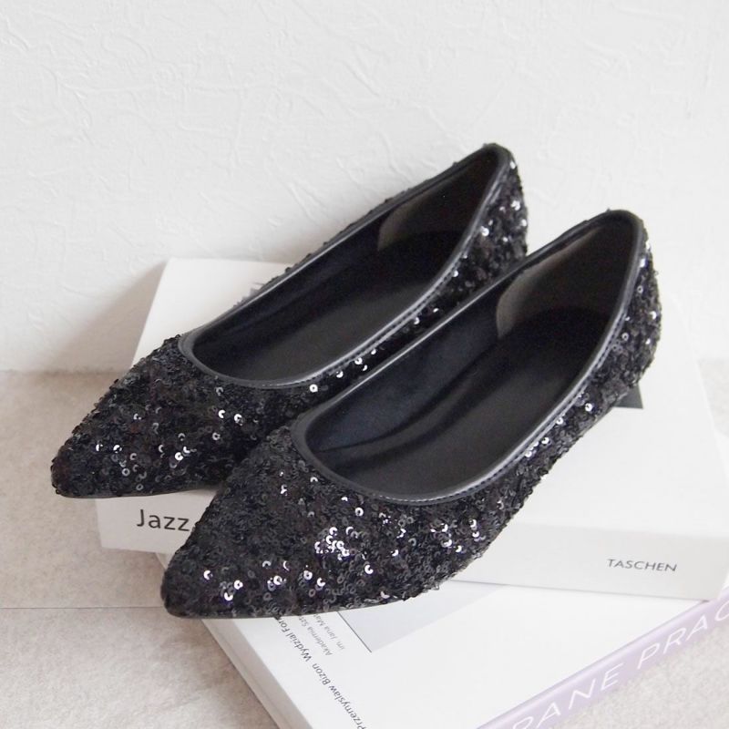 ・スパンコールの輝きをプラスした主役級キラキラフラットパンプス