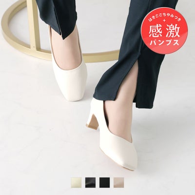 【履き心地やみつき感激】スクエアトゥ5cmプレートヒール感激パンプスのレビュー