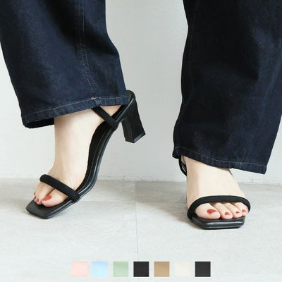 ストラップが華奢なので最初はぎゅっと食い込むような間隔でしたがすぐに慣れます。 ヒールが思っていたより安定しているので、歩き方に少し気を付ければ長く履いていても大丈夫でした。 パッキリグリーンはモノトーンコーデの差し色になって◎です。
