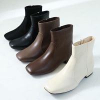 【2025年新色追加】スクエアトゥシンプルローヒールショートブーツ